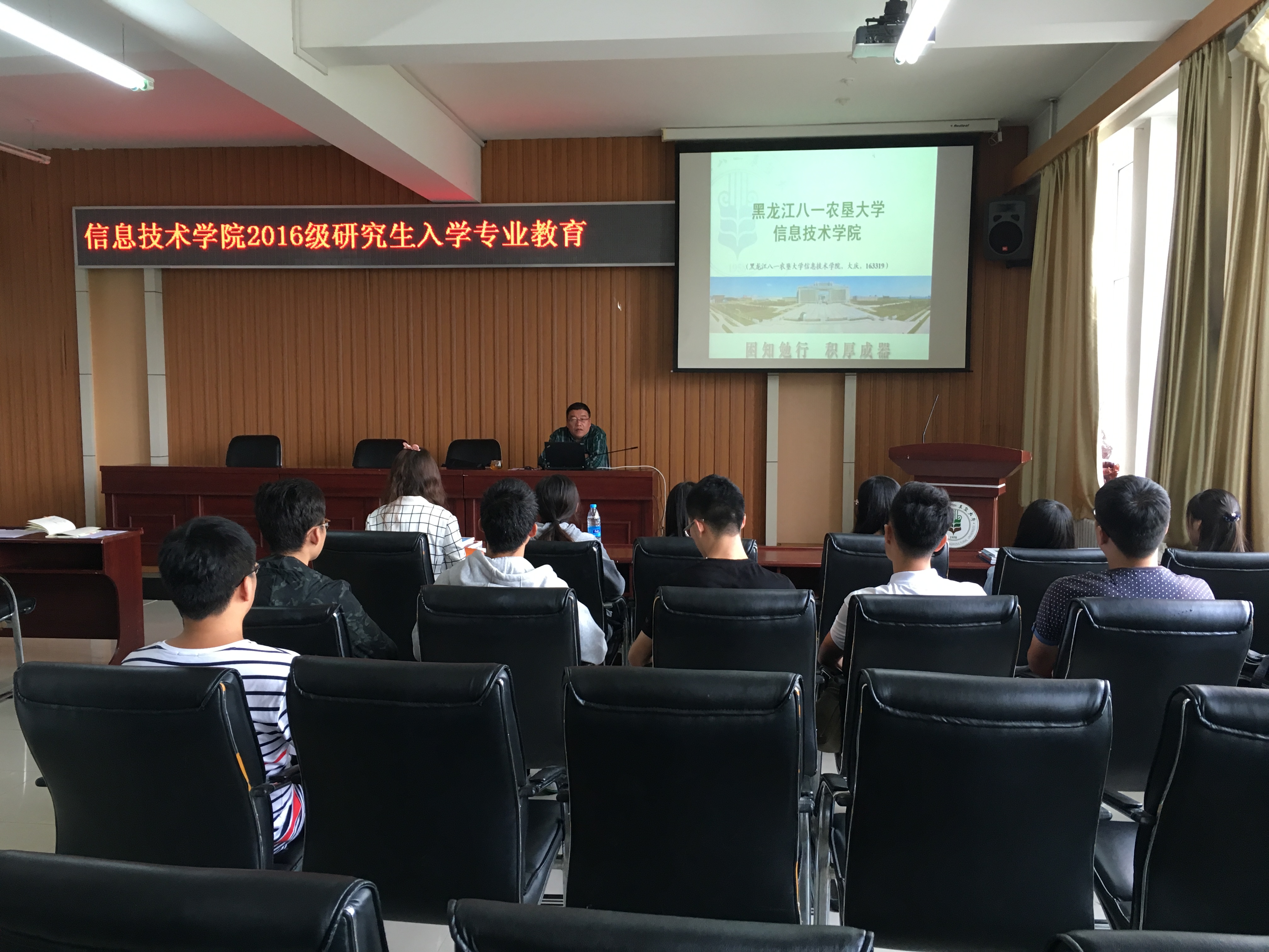 9月2日,公司2016级研究生入学专业教育在信息馆313室进行。2016级全日制硕士研究生入学13人,其中农业电气化与自动化专业研究生4人,农业信息化研究生9人。