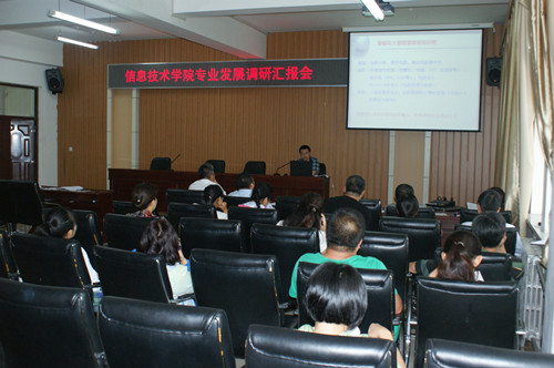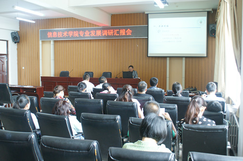 汇报会上,各系主任以“信息技术学院本科专业调查表”为依托,首先从“专业定位、团队队伍、人才培养创新、毕业生反映”等几个主要方面对专业现状进行了详细和专业的汇报,又结合社会需求等提出了专业建设规划的总体思路。与会学院全体教师结合每一位专业负责人的汇报内容和学院各学科、专业、团队、人才培养及毕业生就业等综合情况进行了打分。汇报结束后,与会的领导、各系主任与全体学院教师在专业定位、团队建设、人才培养,以及毕业生就业等方面进行了亲切和充分的交流与座谈。