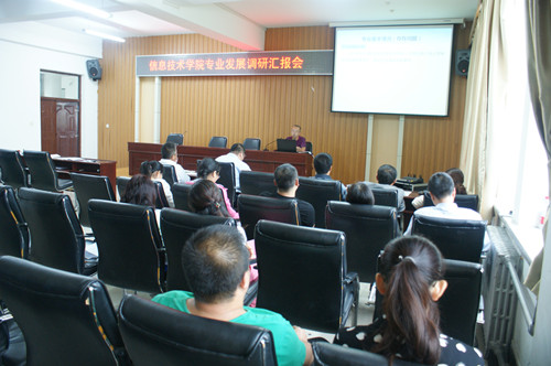 为探讨专业发展方向和定位,9月14日,信息技术学院召开专业发展调研汇报会,汇报会在信息馆313会议室召开。经理张伟、公司党委书记杨建民、副经理史国军、各系主任以及学院全体教师参加了会议。会议由副经理史国军主持。