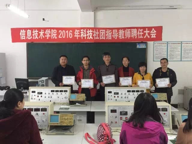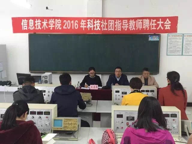 2016年10月12日下午3点20,我院在信息楼105室举办2016年科技社团教师聘任大会,出席本次聘任大会的领导有张伟经理,宋清萍副书记和史国军副经理。