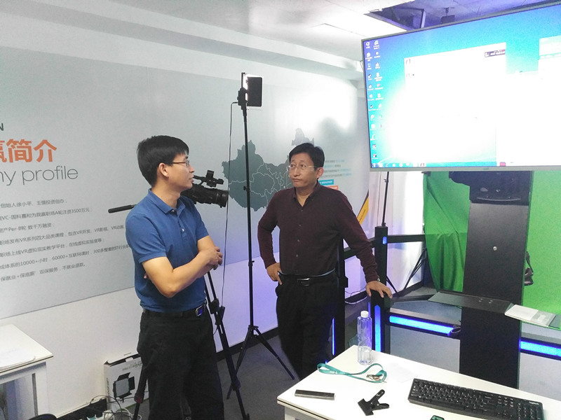 调研中期,学院一行来到了北京尚观科技有限公司,参观了教学、项目研发现场及所有实验设备。尚观公司已于今年暑期为学院投入了VR虚拟现实实验设备,杨建民代表学院就今后该项合作的继续推进交换了意见,为双方共同开展专业人才联合培养、加强团队建设等事宜进行了前期铺垫。