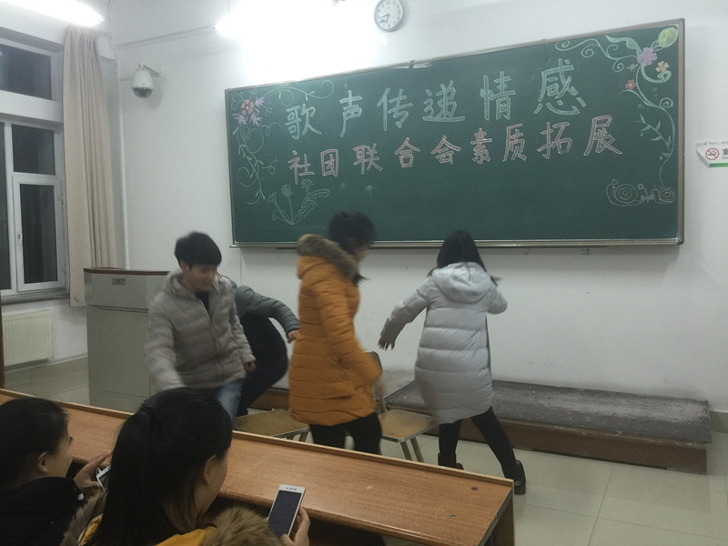 为了提高同学们的团队协作能力,增强团队意识和创新意识,2016年11月27日下午6:30,社团联合会素质拓展于高职楼109成功举行。 在本次素质拓展上,大家分别进行了背夹气球、抢椅子、唱歌等多个项目。在素质拓展活动中,同学间的团队意识逐渐显露,在竞赛项目中同学们的创新意识不断被激起。 素质拓展活动的成功开展不仅仅提高了同学们的团队意识,还让每一个人在活动中学会了感恩与信任,学会了担当与责任。(图文/社团联合会 编辑/范翀 责编/王子鹏)