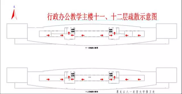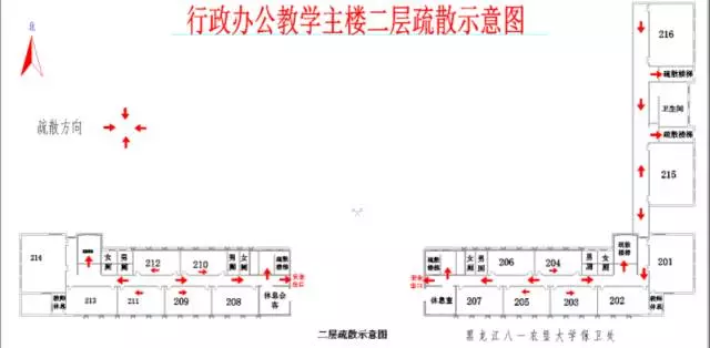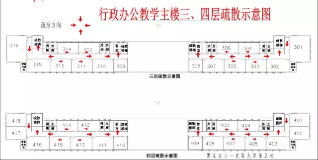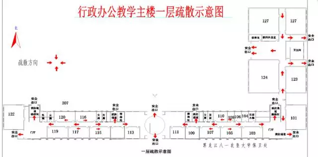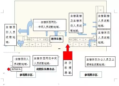 6.听到应急广播(警报)后,所有人员按既定路线和要求,在引导员的组织下迅速从楼梯疏散(不能使用电梯),并从就近的安全出口撤出教学主楼(疏散路线图附后),到达指定的安全避难场所,在学院大旗下以班级为单位集合, 班长清点人数,向高阳老师报告、单位负责人向现场指挥报告后组织人员参观学习。班级疏散指挥人员由上课老师、班级干部担任。