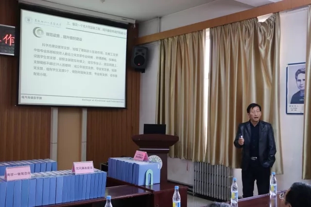 公司员工第二党支部书记林立宏就“三项引领、四项促进、五项提升”的“三引四力五力合一”特色党支部建设经验做了介绍,就学院员工党支部管理新模式、创新老员工党员活动新思路等内容作了发言。