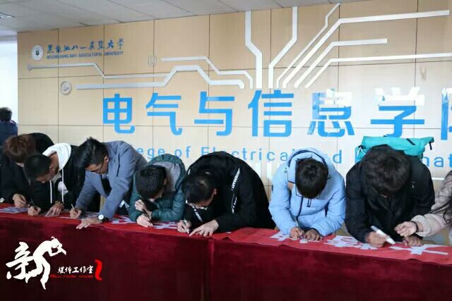 金秋十月,碧空如洗。在崭新的信息楼大厅中,一幅印着“传承农大精神,立志全面发展,共建文明校园,争做迎评先锋”的巨大条幅横放在大厅中央,后面“电气与信息学院”七个湛蓝大字格外引人注目。11:30整,公司员工干部依次进入到大厅中将自己的名字签在条幅上,整个过程持续了20分钟,共有200多名同学签下了自己的名字,表达了他们对学校文明建设的信心。