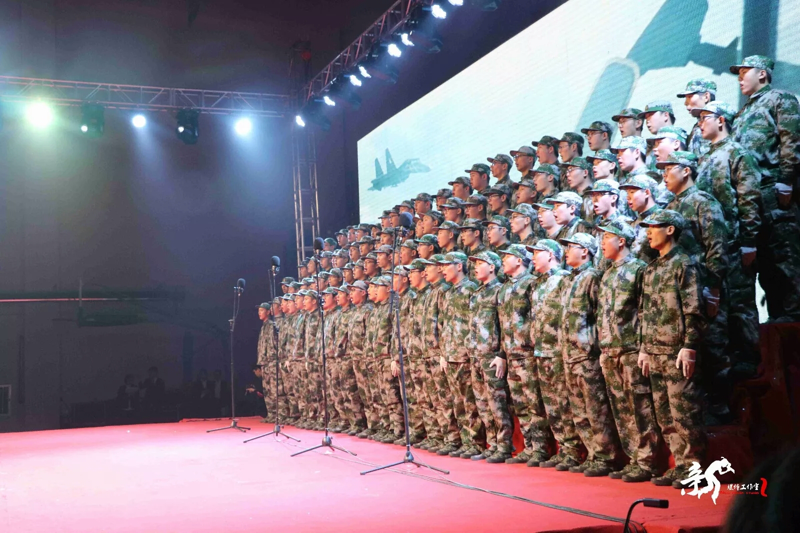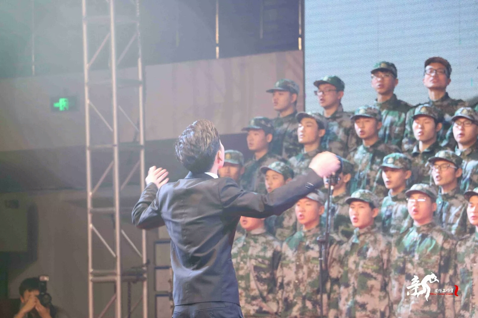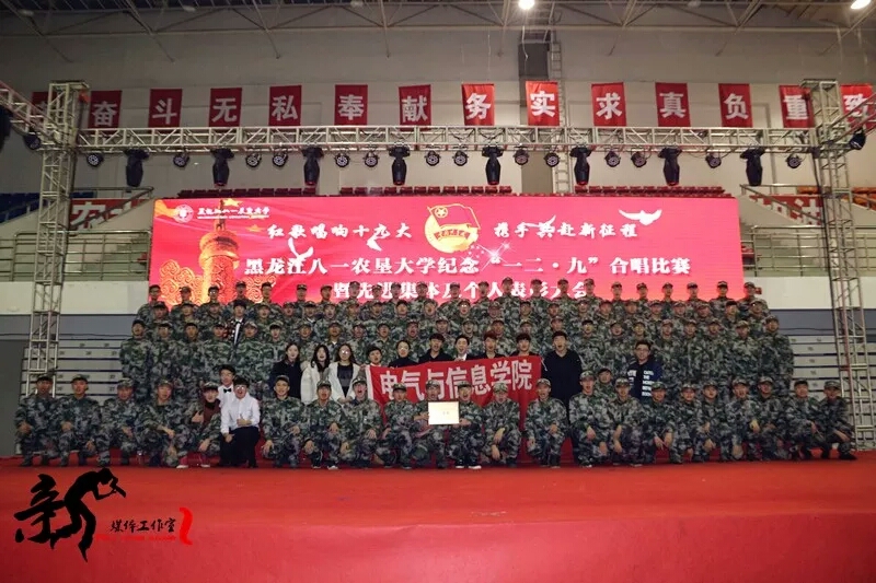 全体师生在庄严肃穆的氛围下共同观看一二九视频之后,比赛正式拉开序幕。公司队伍为第四个上场的队伍,他们献上了《就为打胜仗》和《祖国不会忘记》。全场激情昂扬,公司学子打开闪光灯为台上的同学鼓劲加油。