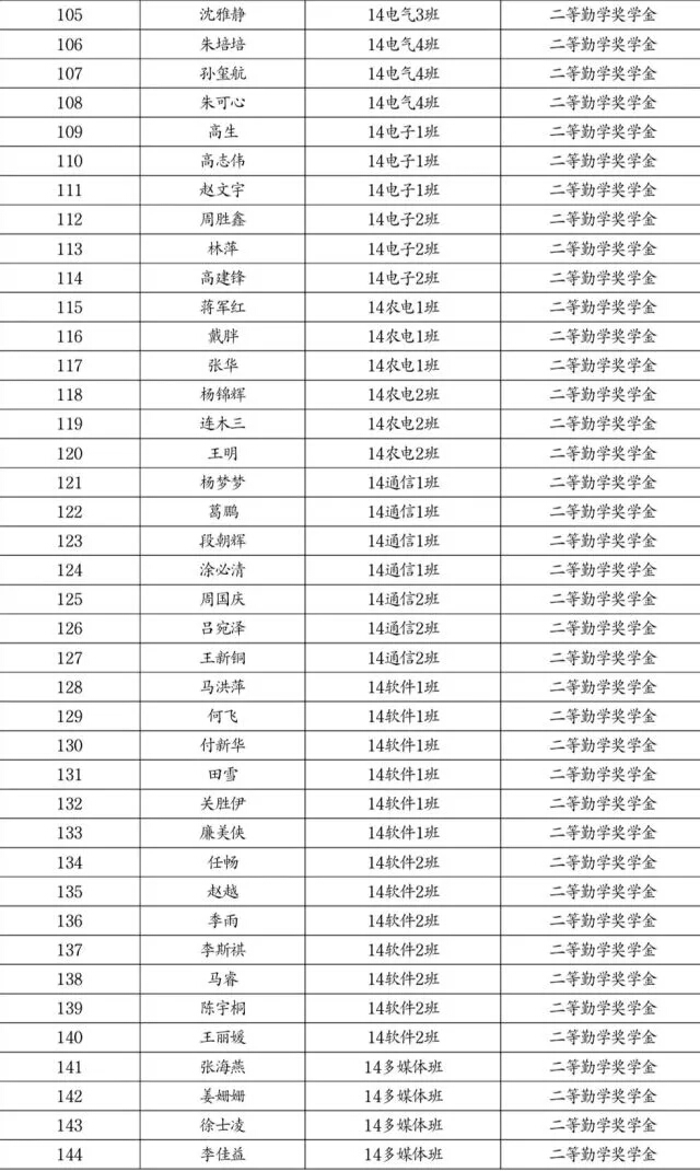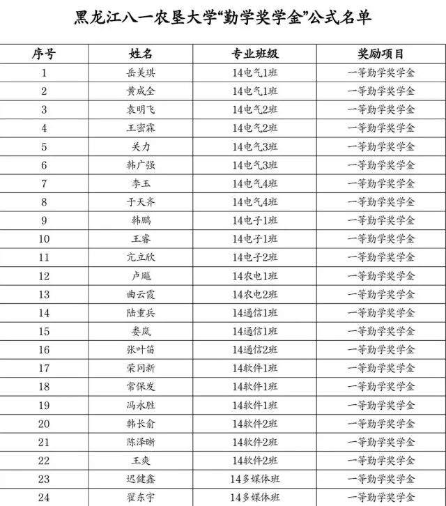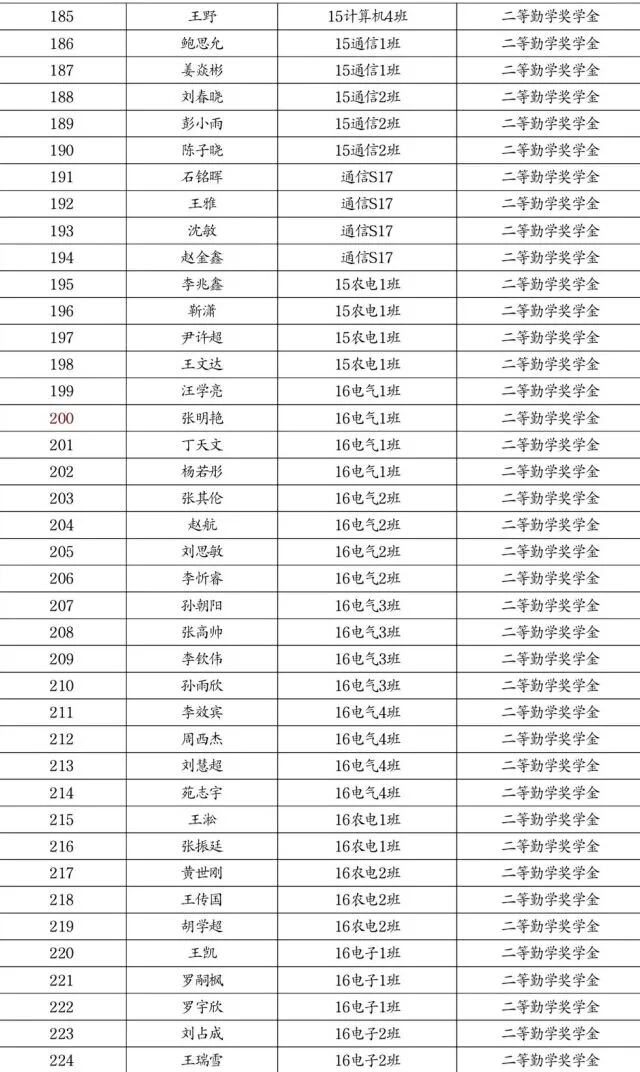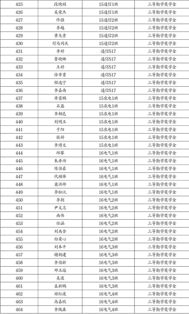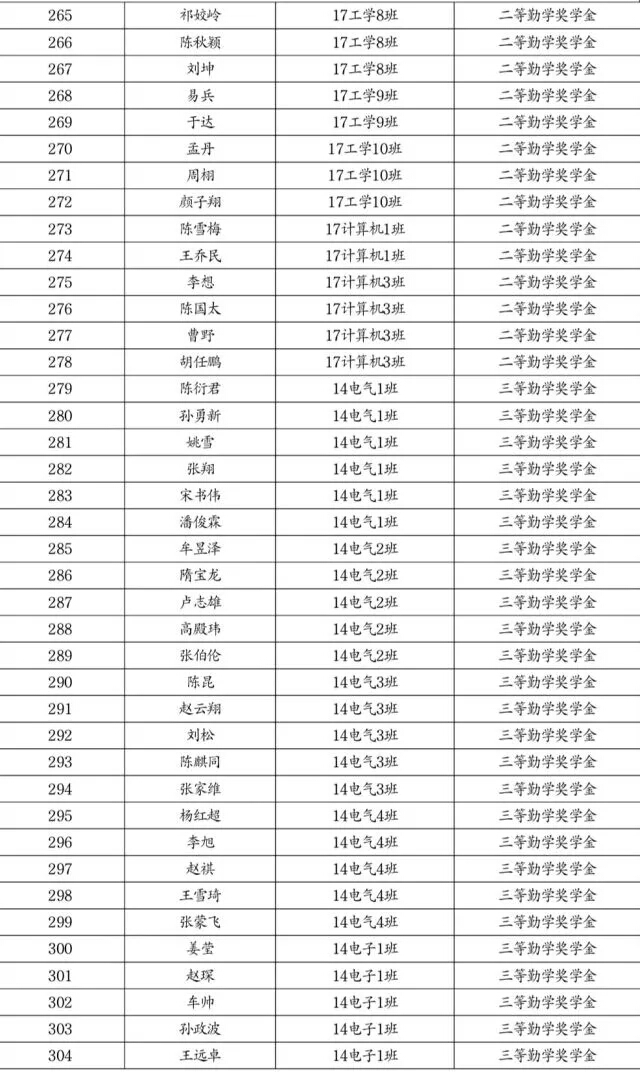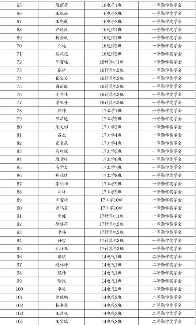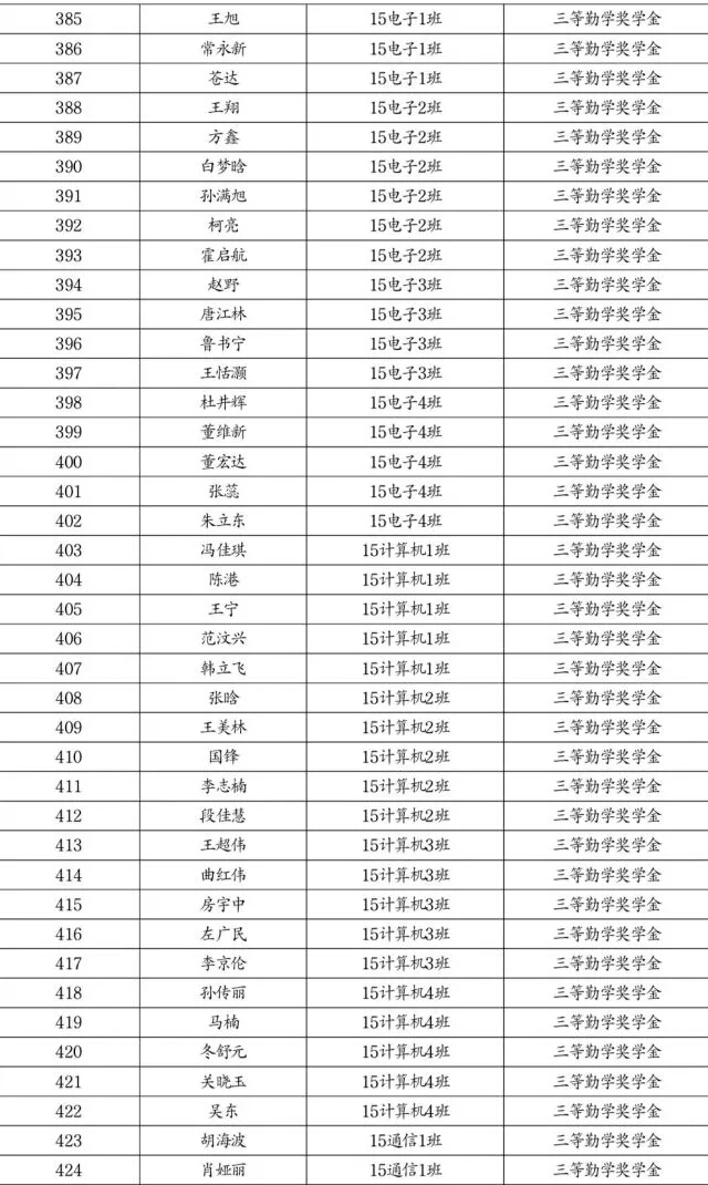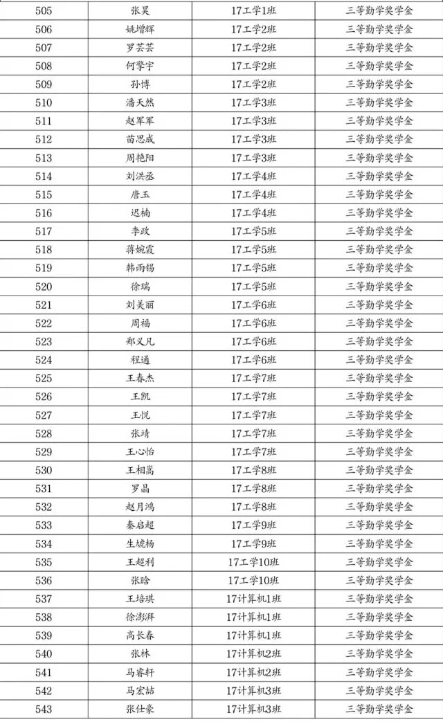 勤学奖学金推荐名单公示