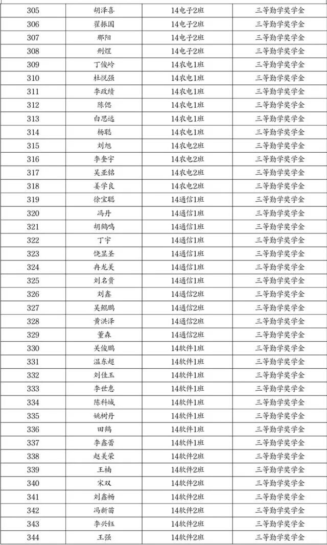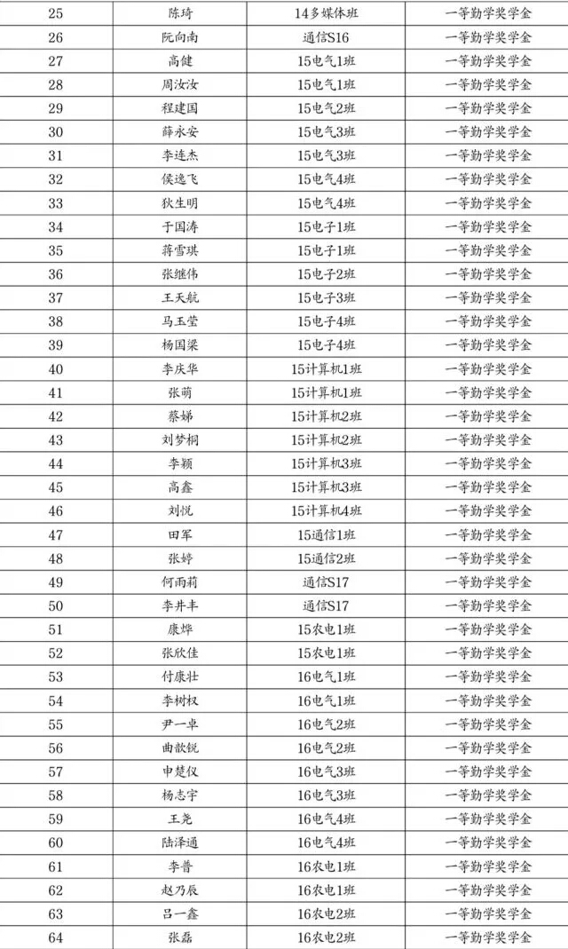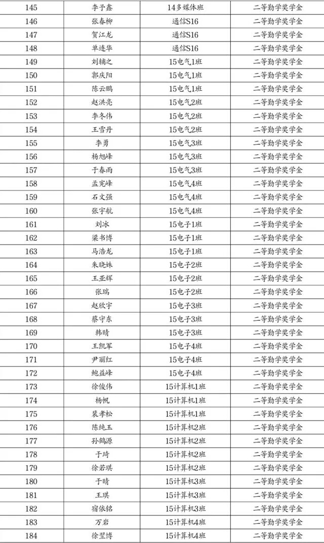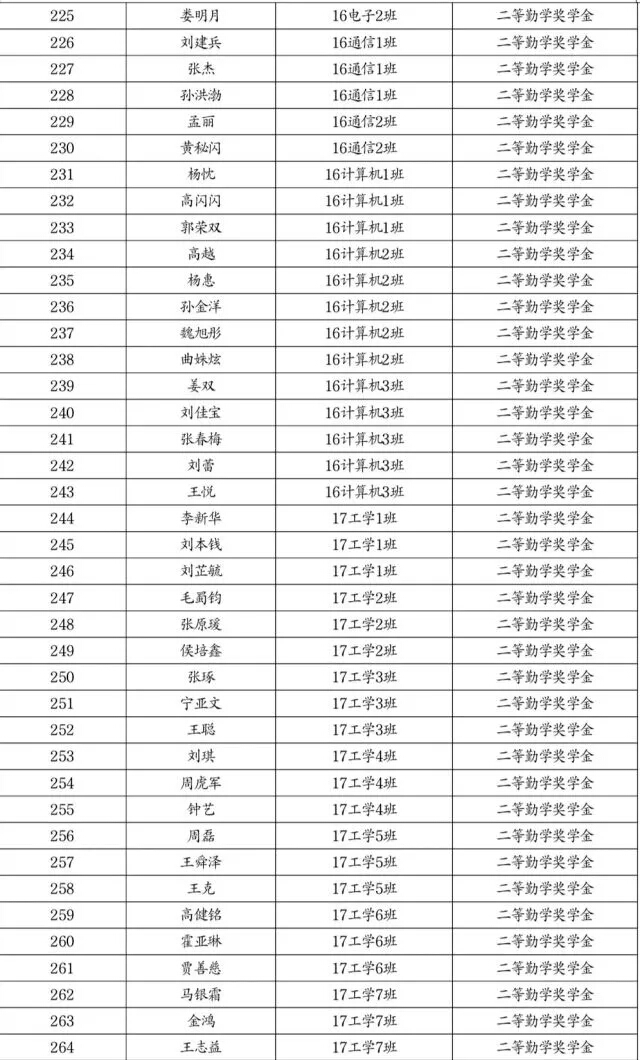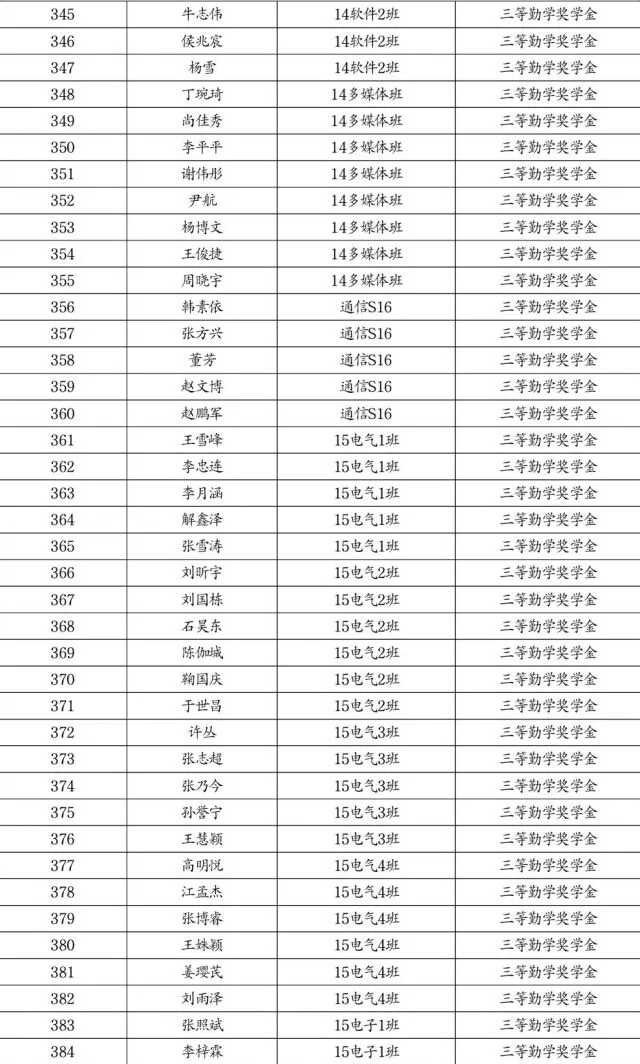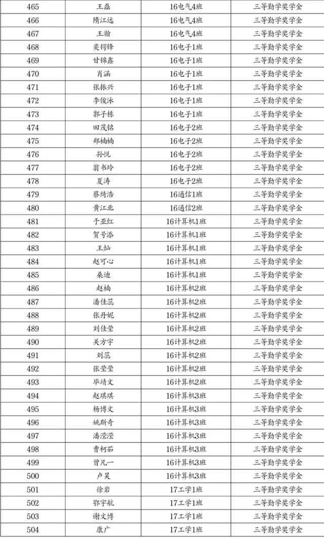 勤学奖学金推荐名单公示