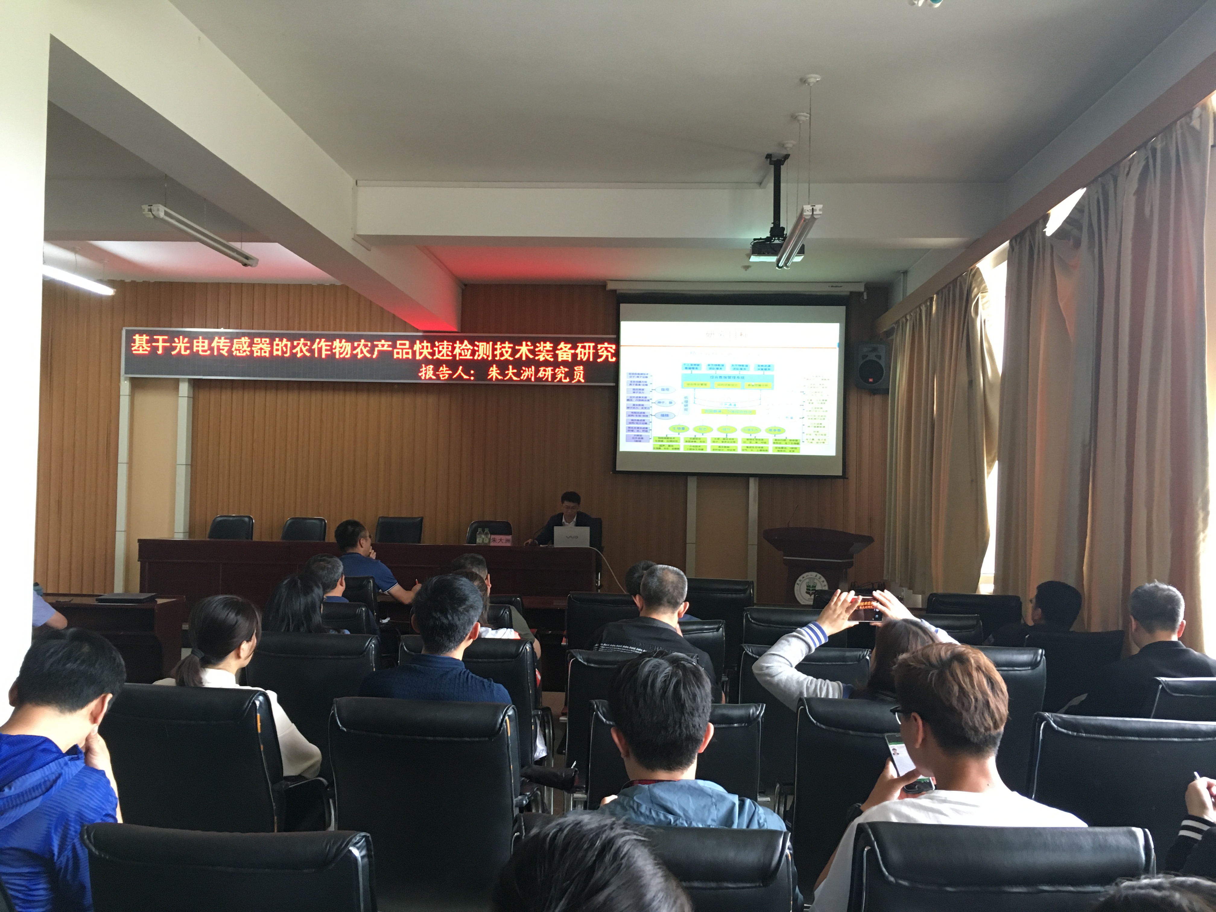 朱大洲研究员在报告中针对农产品快速检测技术装备主要讲了四方面内容:1、作物田间性状测量技术装备;2种子检测技术装备;3、近红外光谱分析模型的预判参数;4、农产品检测与营养健康信息化。而且结合自己长期的科研和服务社会经历,分享了利用农作物农产品快速检测技术装备开展农产品检测评价、及营养健康信息化方面的信息。与会师生均表示朱大洲研究员的报告与学院教师的科研方向结合紧密,从报告中大家获益颇多。