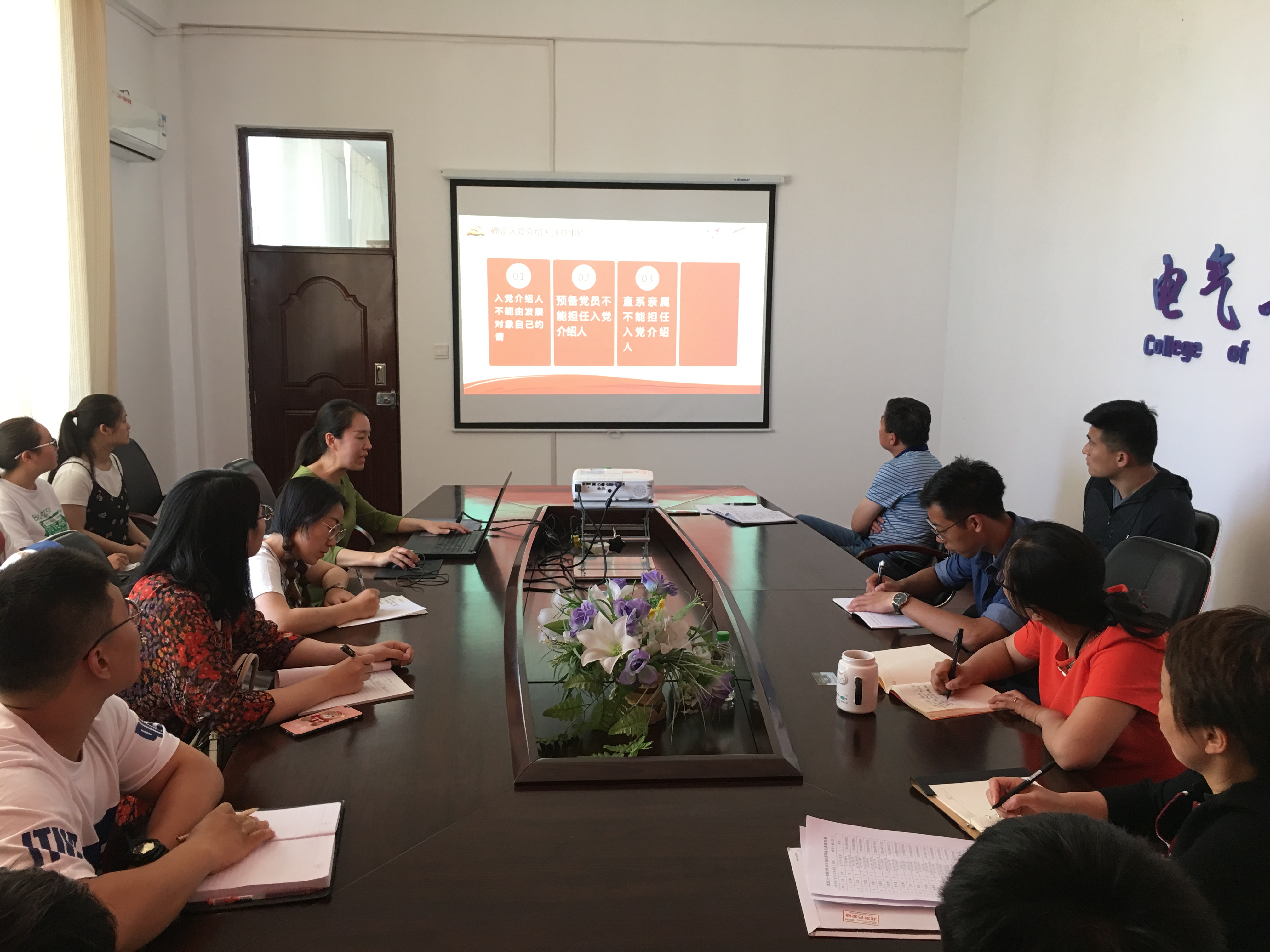 培训会由学院员工第六党支部书记徐娟主讲。徐娟从入党申请书、入党积极分子的培养和考察、发展对象的确定和发展、预备党员的接收、预备党员的教育和考察等五个方面,重点从党支部工作规范化、制度化角度,进行了深入细致的讲解。培训内容丰富、主题鲜明、深入浅出、结合实际案例,具有很强的针对性和指导性,对党务人员提高政治理论素养、掌握党建工作方法、提升党建工作水平具有积极的推动作用。