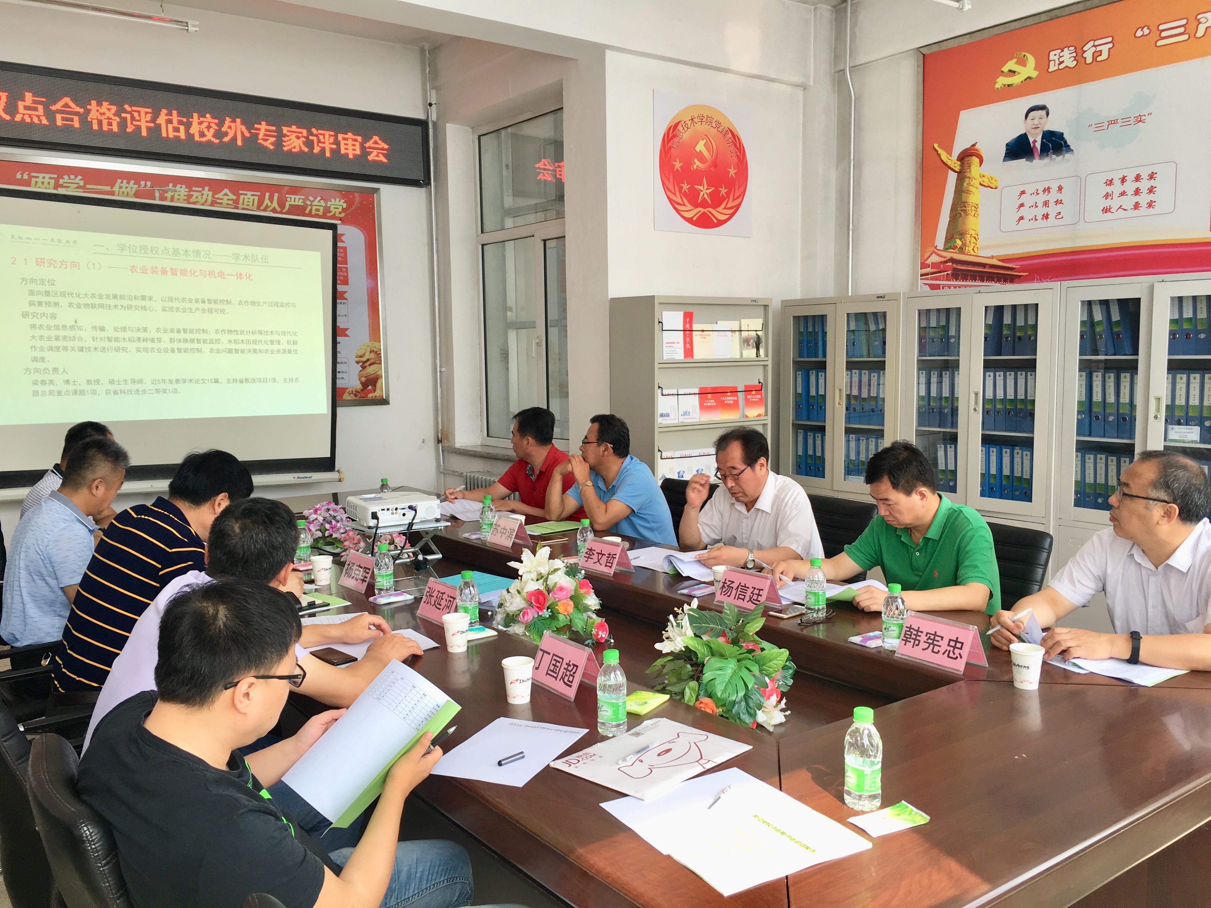 本次评估的评审专家由东北农业大学工程学院博士生导师、国务院学科评议组成员李文哲教授,东北农业大学电气与信息学院经理苏中滨教授,吉林农业大学信息技术学院经理李士军教授,河北农业大学信息科学与技术学院经理韩宪忠教授,国家农业信息化工程技术研究中心杨信廷研究员共五位专家组成。研究生处杨克军处长,电气与信息学院张延河书记、陈争光副经理、史国军副经理及部分教师及员工代表参加了此次会议。