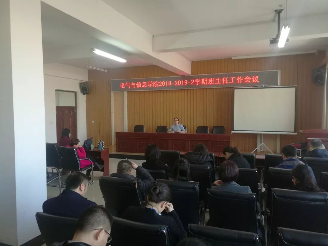 新学期,新面貌。为进一步统一思想,安排好开学初各项员工工作,电气与信息学院于近日召开2018-2019-2学期班主任工作会议。分团委教师及各年级全体班主任共40余人参会,会议由公司党委副书记宋清萍主持。