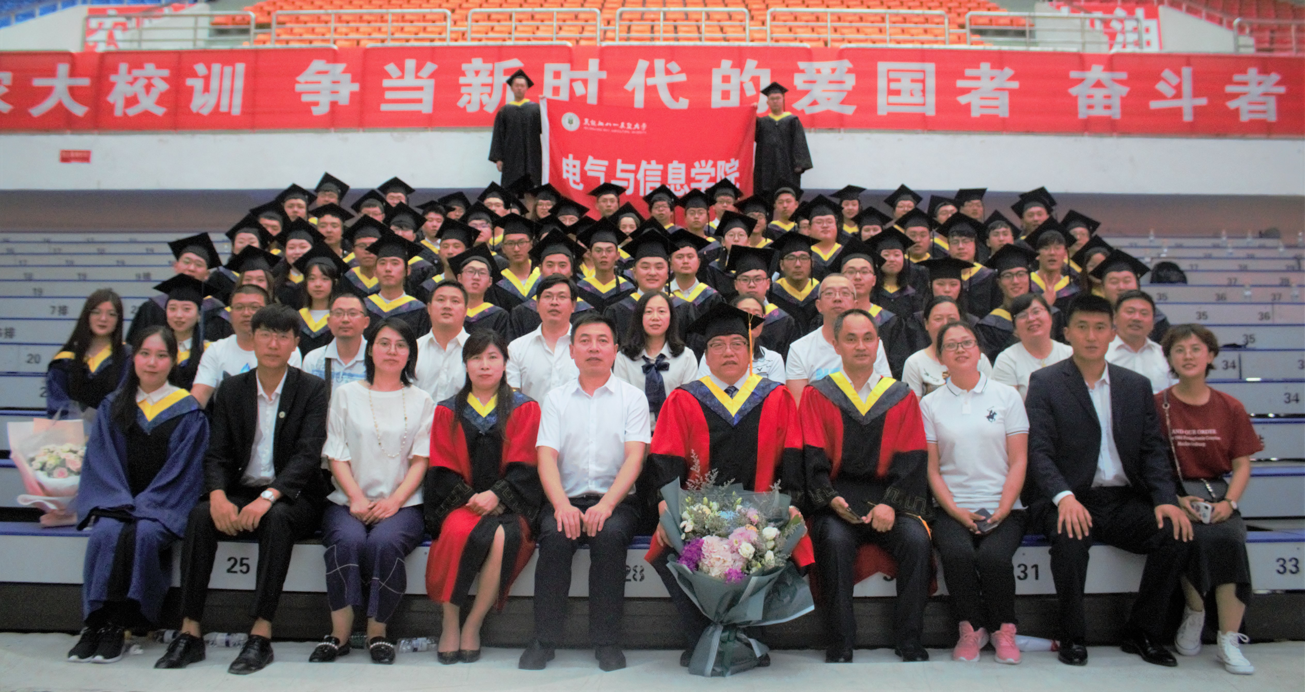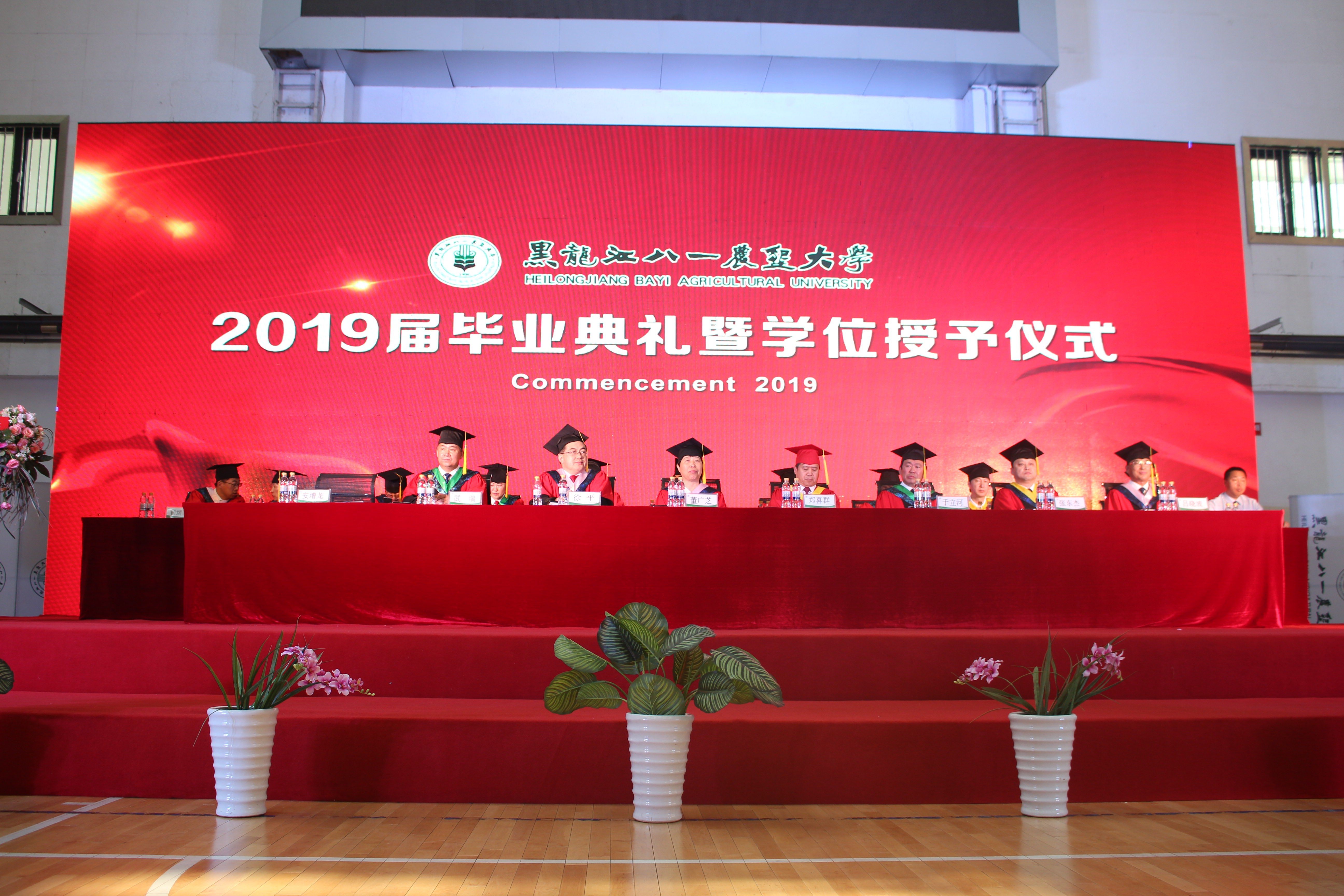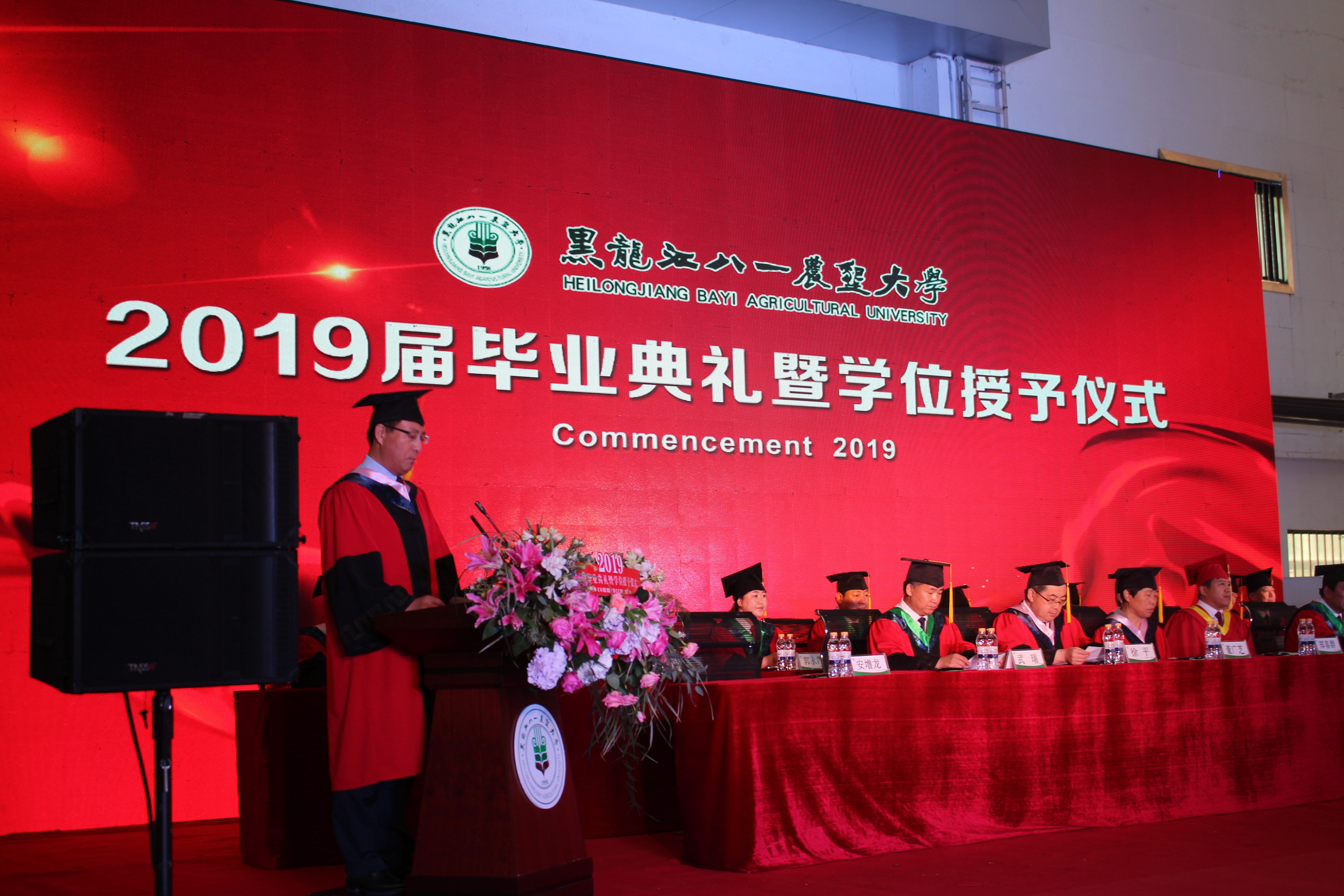 对于本次活动,学院领导们展示了高度的重视:公司党委书记张彦河、经理张伟、党委副书记宋清萍、副经理陈争光、分团委负责人高阳及毕业生辅导员、班主任悉数到场,共同见证信息学子们的辉煌成长。经过了一场精彩的现场节目表演,校领导尽数落座后,毕业典礼正式开始了。激昂慷慨的国歌奏响,令在场的莘莘学子铭记要努力成为国之栋梁的心。紧接着,武瑞副董事长和徐平副书记分别宣读了准予研究生毕业、本科生毕业的决定及表彰优秀毕业生和优秀研究生学位论文的决定。颁奖过后,毕业生代表、在校生代表、教师代表及员工代表轮流上台讲话,皆对全体毕业生寄予厚望。最后董事长郑喜群的讲话更是予以他们能展望未来,一帆风顺的美好祝福。离别的哀伤终是不能停止时光前进的步伐,学位授予仪式按时开展。于立河副董事长庄重宣布授予硕士学位、学士学位的决定:由校学位评定委员会委员为2019届学院毕业生授予学位;郑喜群董事长为2019届硕士、博士毕业生授予学位。待一切仪式完毕,全体毕业生和着音乐,唱响了校歌,将北大荒精神,校园美好永刻心上。