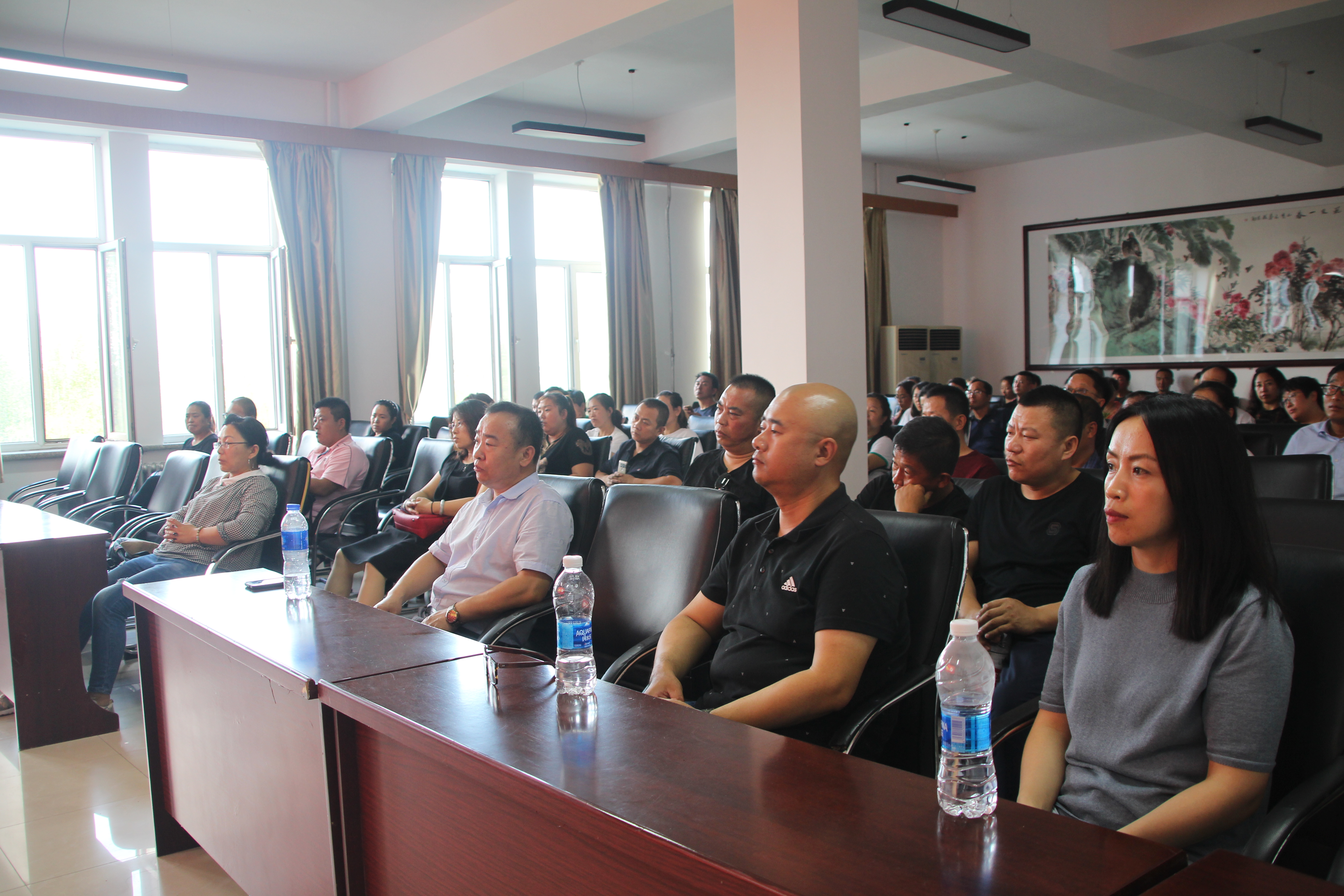 下午4:00,在信息楼阳光大厅,2019级新生见面会正式开始,公司党委书记张彦河、经理张伟、党委副书记刘传明、副经理陈争光以及2019级辅导员李超颖。首先学院领导对新生的到来表示热烈的欢迎,同时也表达了对新生成功步入大学的祝贺。为了让新生尽快适应老员工活,在见面会上,学院领导针对入学安全教育,其中包括增强员工保险意识、宿舍管理规定、军训注意事项等几个方面详细地向新生们阐述,同时对同学们提出了相关要求。在这节大学第一课上,同学们都听得聚精会神,在他们期待的眼神中,映着对老员工活的憧憬。