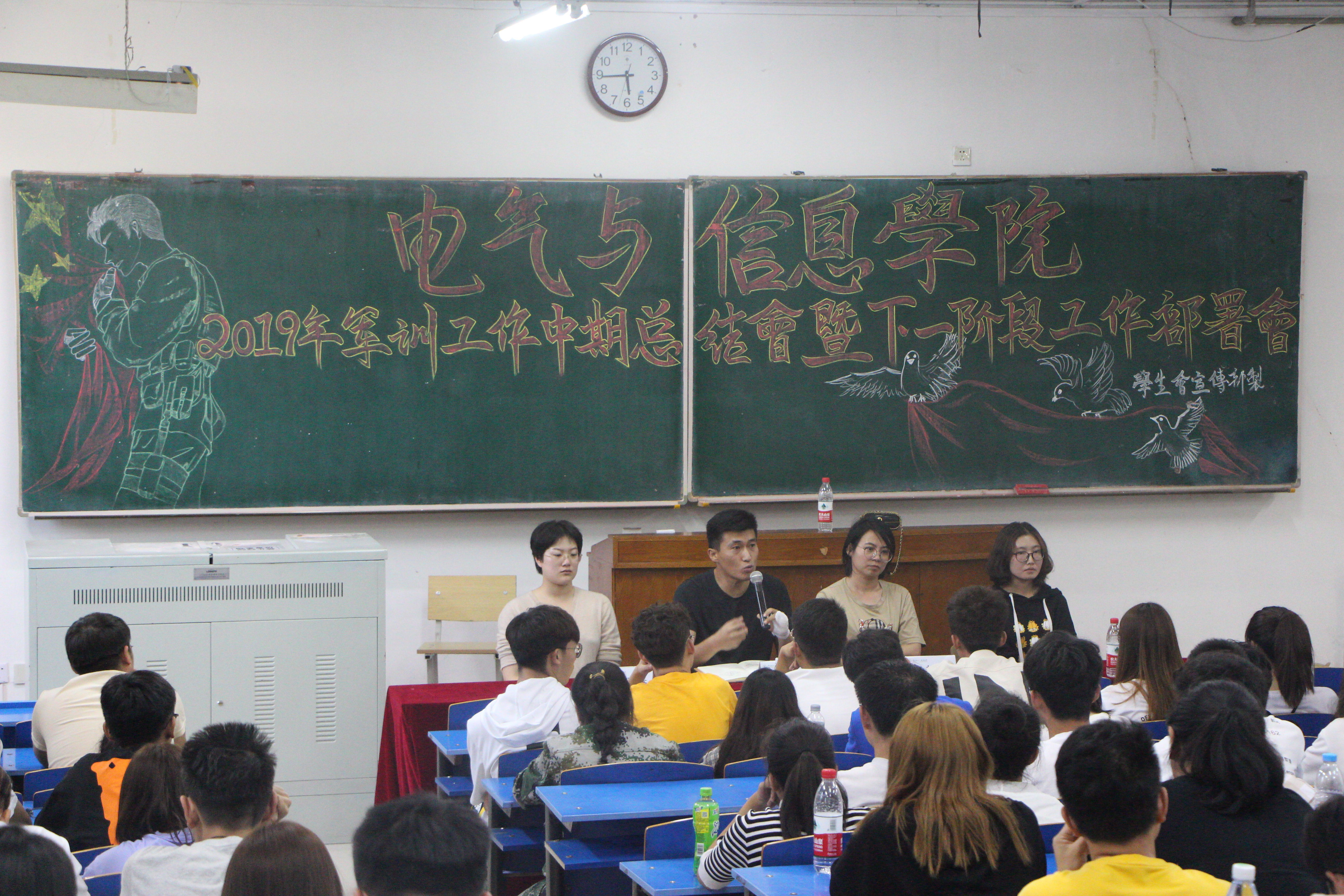 2019年8月31日,电气与信息学院在主楼东区101召开2019年军训工作中期总结会暨下一阶段工作部署会,学院分团委负责人高阳、2019级辅导员李超颖、付泽春、2017级辅导员骆晓雪及150余名员工骨干参加会议。