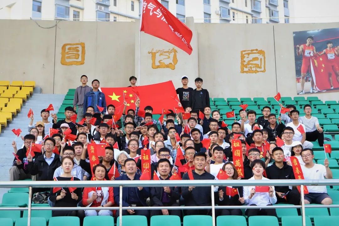 不仅如此,为了营造气氛,学校还分发了国旗道具给观看的师生们。无数面在手中挥舞的国旗表达了师生的爱国之心和激动心情。