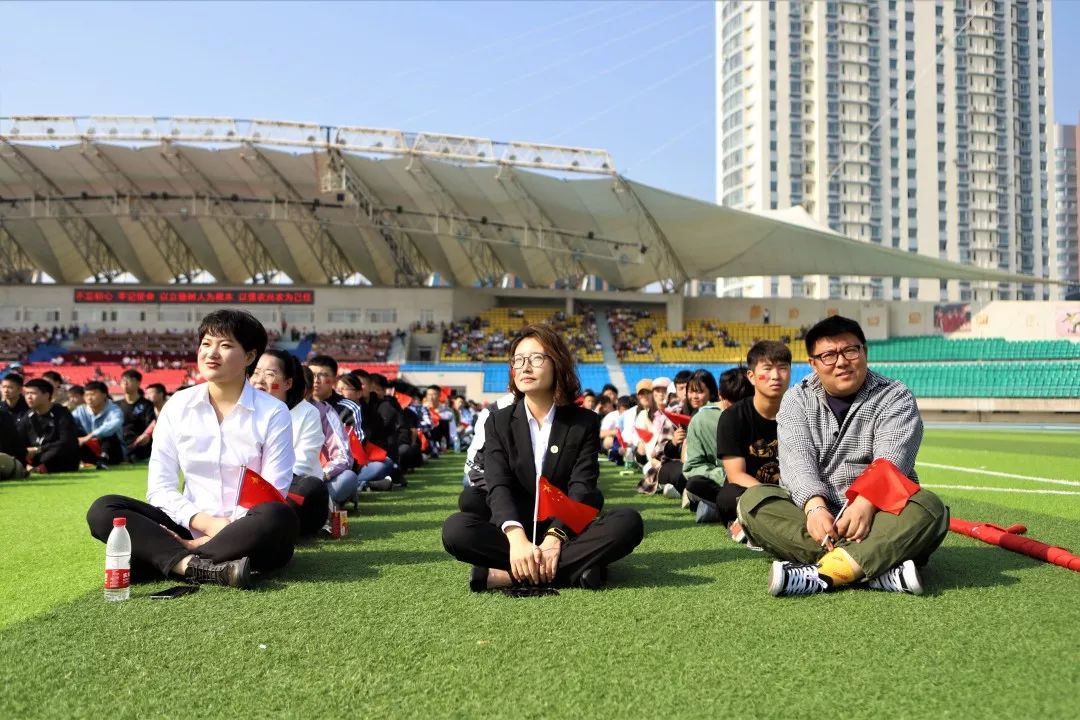 学校作为为国家培养优秀人才的高校之一,也组织了各学院于体育场观看阅兵式直播。