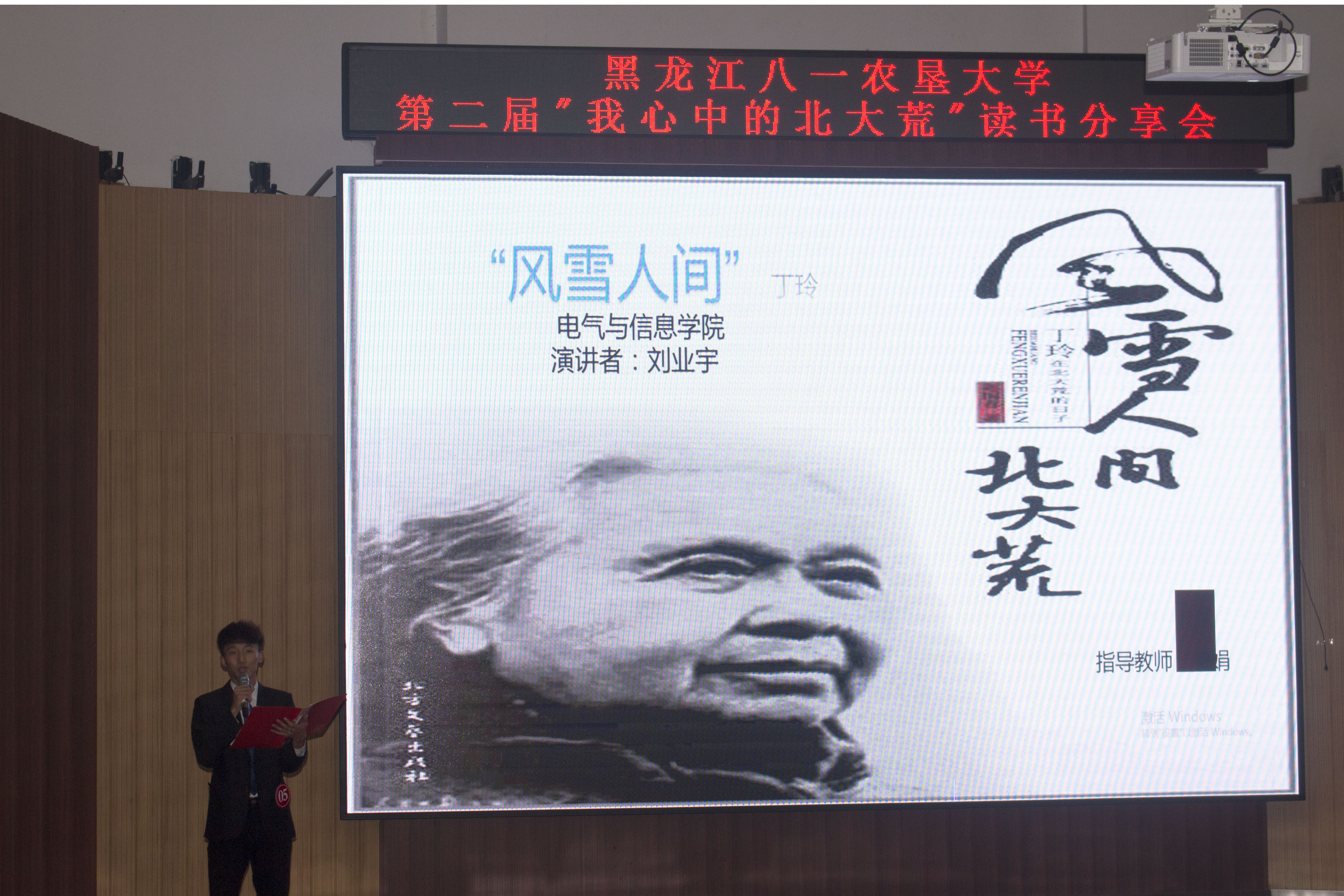 来自各学院的参赛选手通过PPT、配乐朗诵等形式来表达自己对北大荒著作的理解和感悟。电气与信息学院的刘业宇同学通过满含深情的分享、完美的舞台感染力将在场师生带回到那段激情燃烧的垦荒岁月,使大家更深层次的了解到"艰苦奋斗、勇于开拓、顾全大局、无私奉献”的北大荒内涵精神。最后,他以高分荣获本届比赛的“最佳风采奖”。