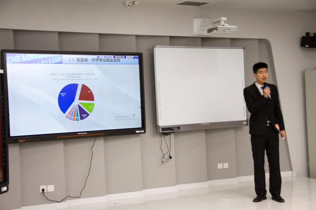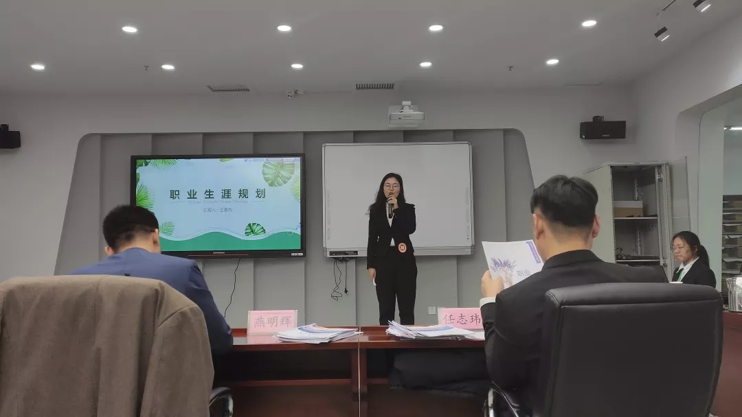赛场上,参赛选手结合PPT演示文稿讲述,个人简历和外部环境进行了全面分析,提成自己的职业目标,发展途径和行动规划。并从可行性和操作性和现实意义方面进行细致阐述。最终姜雯和曹野两位同学以优秀成绩晋级决赛。期待他们在下周三的决赛中再创佳绩。