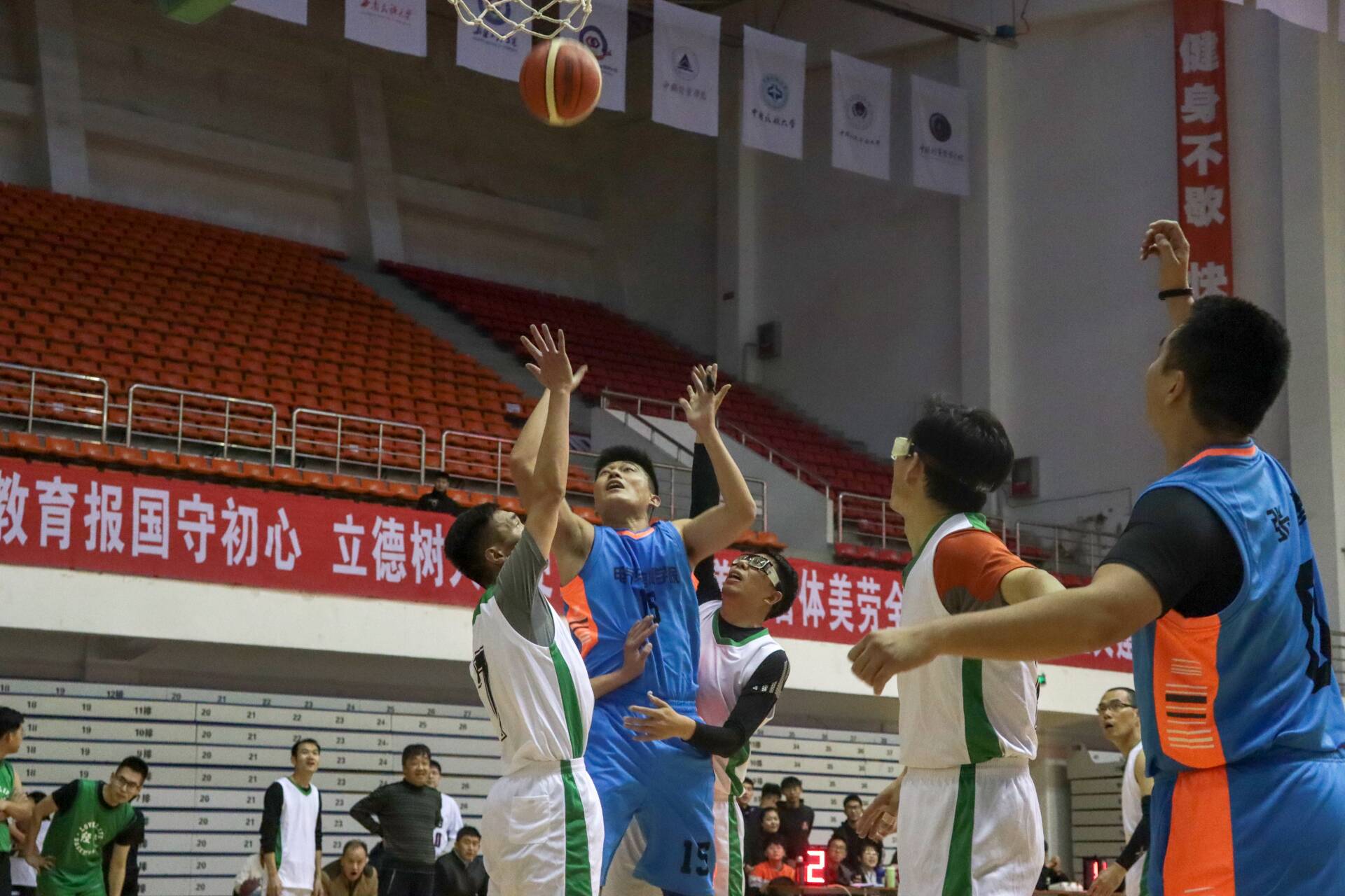 11月13日下午,2019年校教工篮球赛D组最后一场小组赛在体育馆正式打响,对阵双方为电气与信息学院和人文马克思主义学院联队。比赛中,信息学院的老师们拼抢积极,奋勇争先,比赛现场紧张而热烈,场面精彩纷呈,最终再次以大比分获获胜,以小组赛三战全胜战绩昂首挺进本周六下午的八强淘汰赛!(文稿/韩晴 编辑/薛永健 责编/栗世纪)