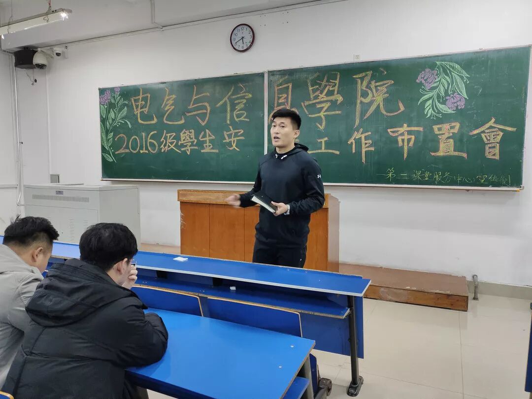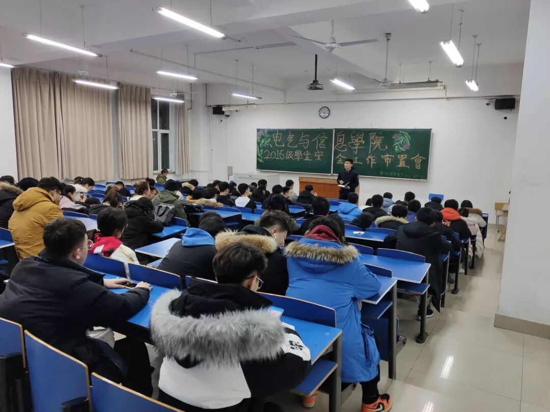 11月19日晚,电气与信息学院在主楼201召开2016级员工安全工作布置会。团委负责人高阳老师,兼职辅导员李嘉熙老师、曲云霞老师以及2016级各班级班长、团支书、寝室长共120余人参会。