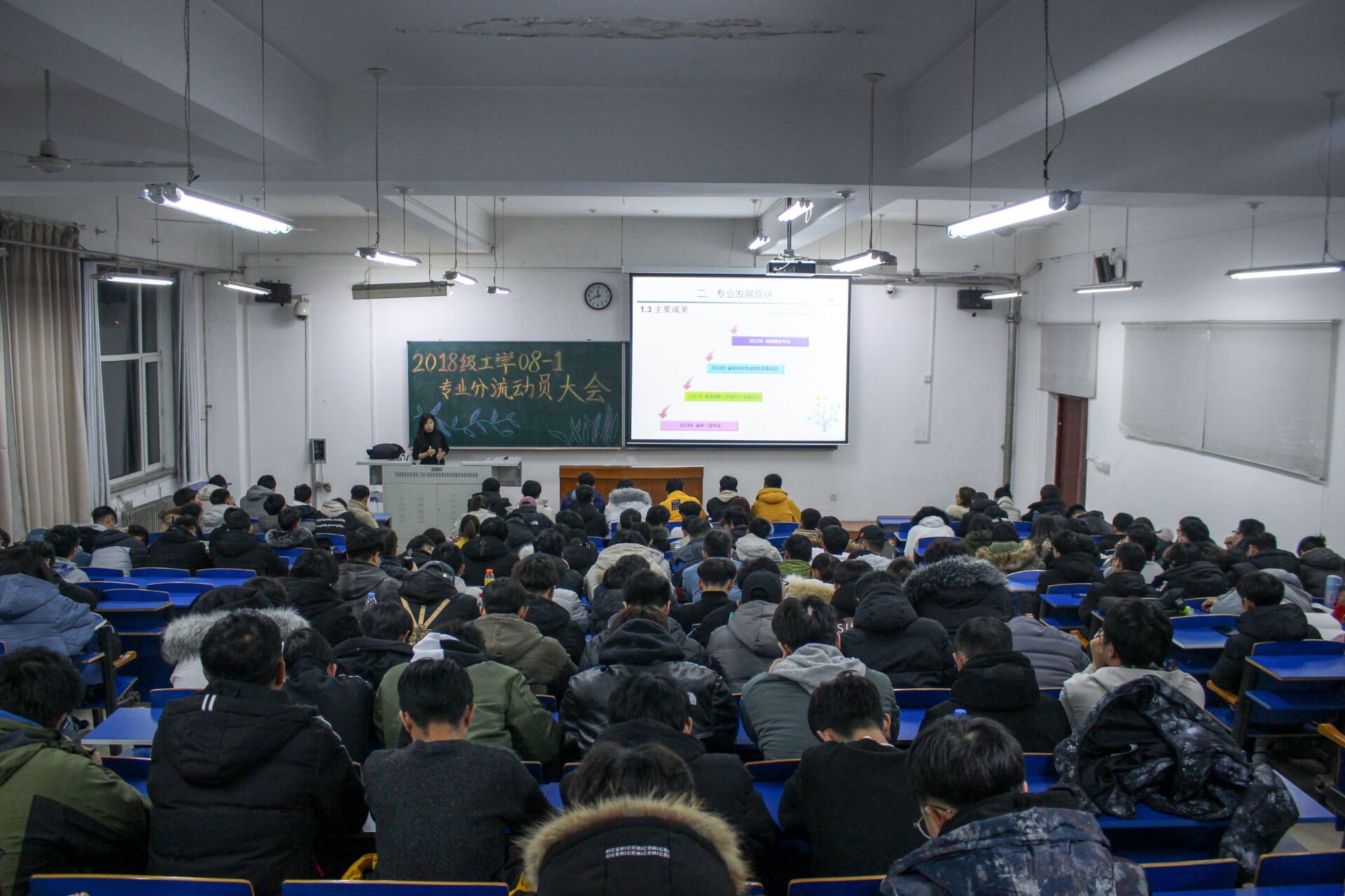 为了给电气与信息学院同学们介绍各专业情况,使大家对自己今后的专业方向有更充分的了解,2019年11月26日晚,电气与信息学院于主楼216室召开了2018级工学08-I专业分流动员大会。电气与信息公司党委副书记刘传明老师、电子信息工程主任谭峰老师、通信工程系主任许杰老师、电气工程及其自动化系主任李爱传老师、农业电气化系主任梁春英老师、2018级辅导员林立宏老师以及电气与信息学院2018级工学08-I专业全体员工参加了此次会议。
