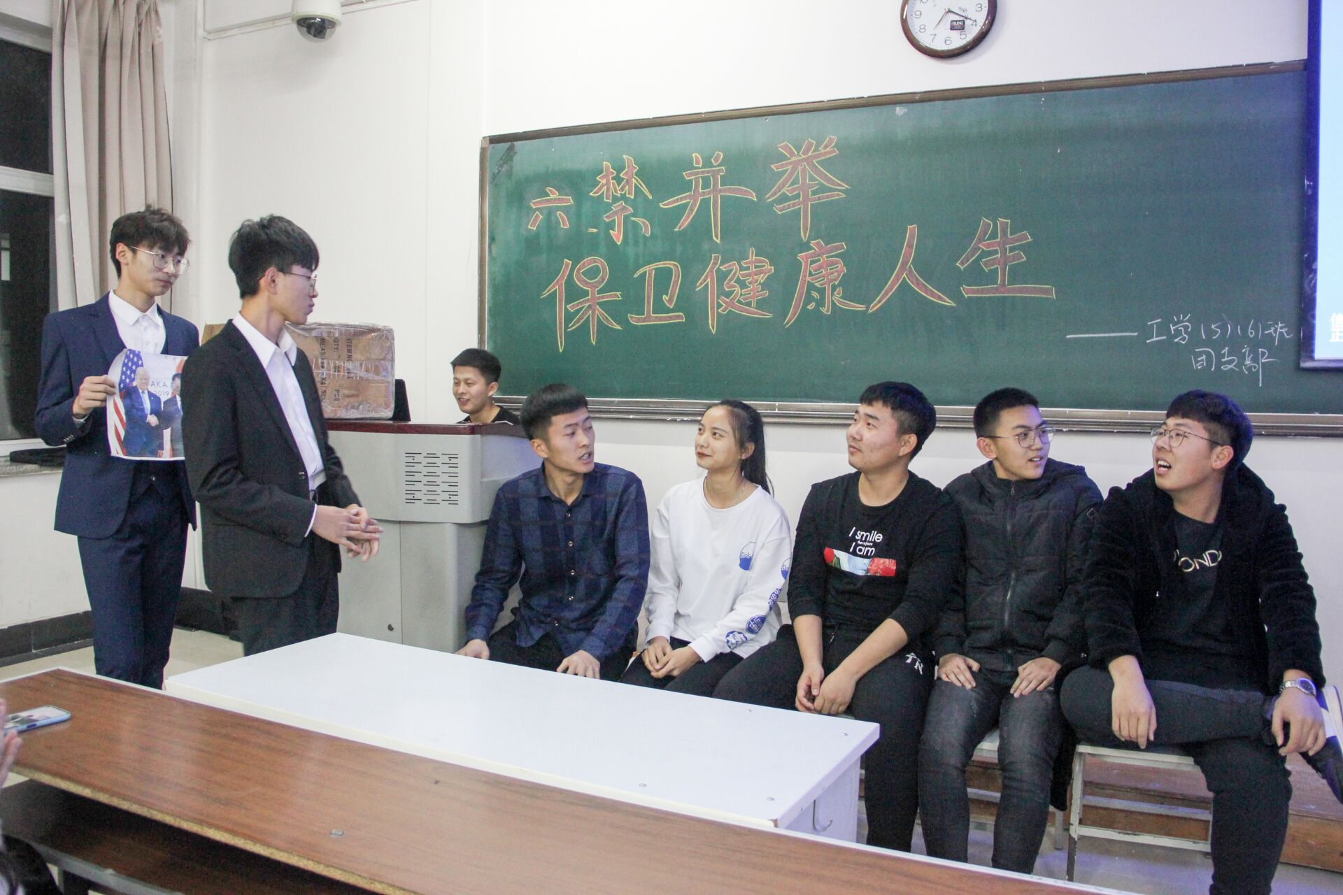 工学二班团支部全体同学积极参加,为活动内容提供自己的想法,在团体活动过程中,同学和老师们分享了自己有关六禁的新闻和知识。内容十分丰富新颖,同学们演的小品也幽默风趣,分享的有关犯罪的事件也为同学们敲响了,骗子就在身边,时刻注意不被骗的警钟。