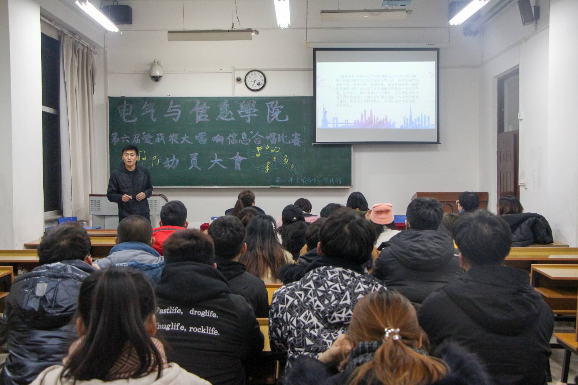 随着冬日寒冷天气的拉开序幕,2019年11月27日晚,电气与信息学院召开第六届“爱我农大 唱响信息”合唱比赛动员大会,学院团委教师、大一至大三各参赛班级员工代表参会。