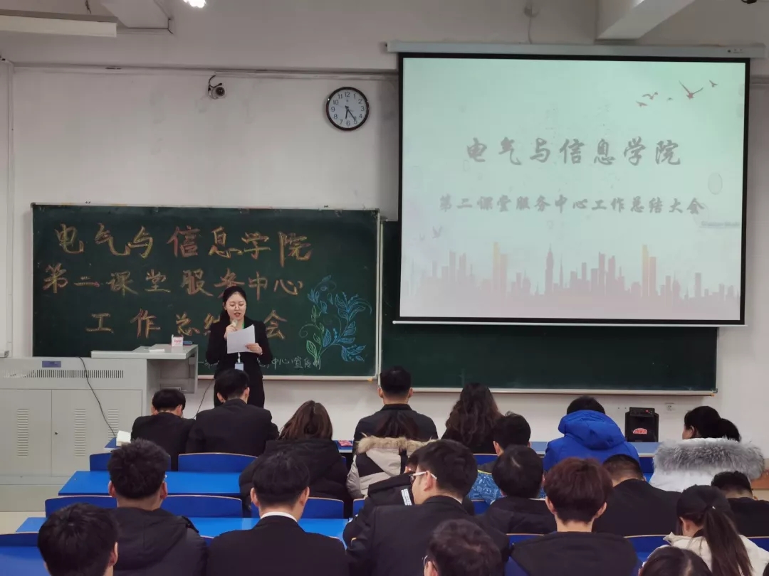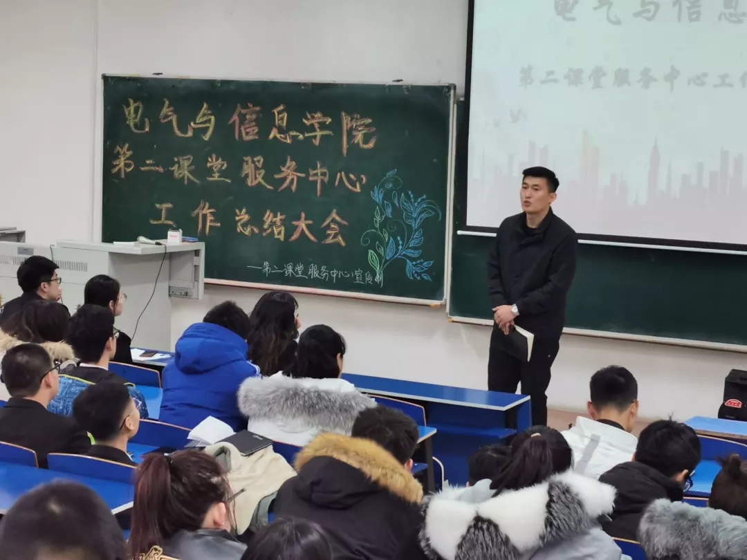 为了更好的回顾过去,总结现在,展望未来,12月27日晚上5点30分,电气信息学院第二课堂服务中心总结大会在主楼122顺利召开。参加本次会议的成员有指导教师高阳老师和第二课堂服务中心全体成员。