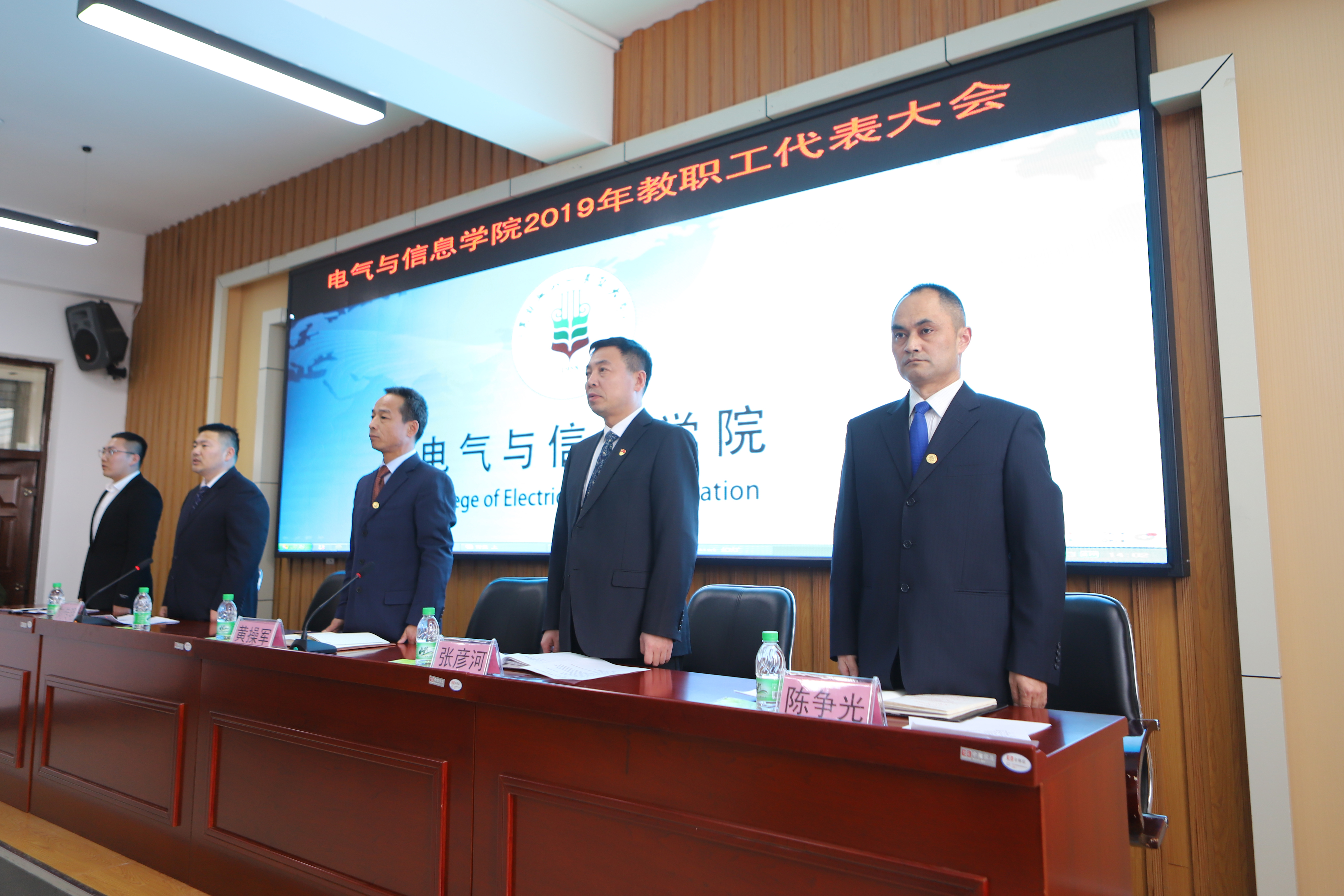 2020年1月6日,电气与信息学院2019年教职工代表大会胜利召开。公司党委书记张彦河,学院经理黄操军,公司党委副书记刘传明,学院副经理陈争光,学院工会主席刘传岐及全院教职工参加大会。大会由刘传明主持。