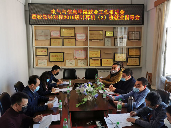 为进一步贯彻落实公司《防控疫情期间就业工作方案》和《校领导对接 2020届毕业生就业帮扶班级方案》要求,引导毕业生正确认识就业形势,促进充分就业,4月2日下午,电气与信息学院通过网络召开就业工作推进会暨校领导对接2016级计算机(2)班就业指导会。副董事长张东杰,就业帮扶工作联络人、人才招聘处负责人,学院领导班子全体成员、各系部主任、就业辅导员及毕业班班主任参加了会议。