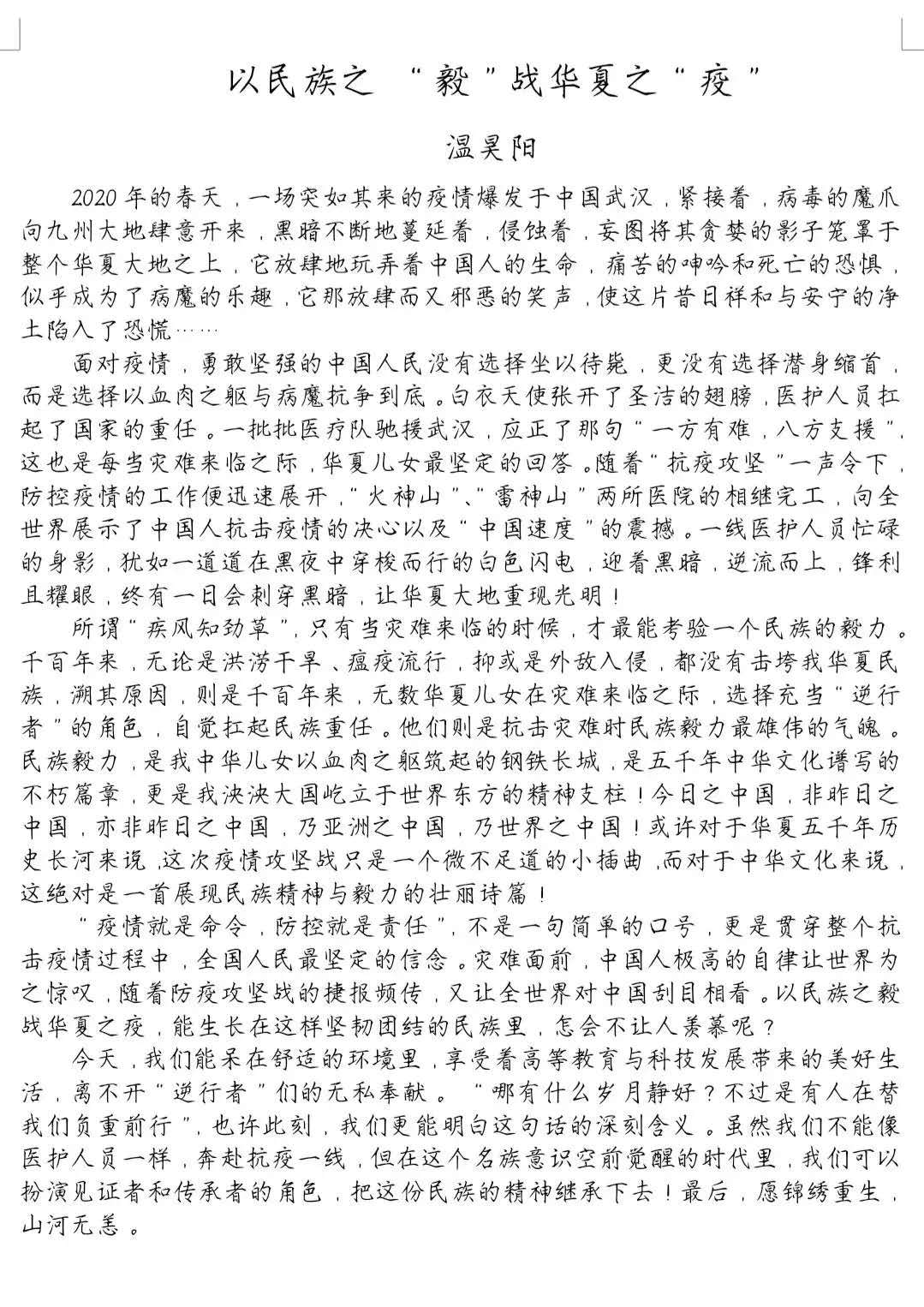 温昊阳——《以民族之“毅”战华夏之“疫”》