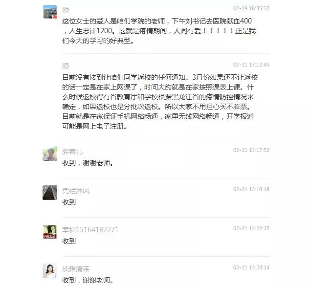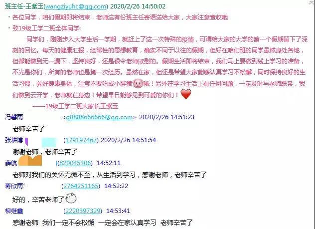 3、开学在即,由于今年的特殊情况,学校决定延期开学,具体开学时间另行通知,让大家在家耐心等待,并做好网上学习的准备工作,向同学们提出如果有什么特殊情况及时与学校辅导员和班主任联系;