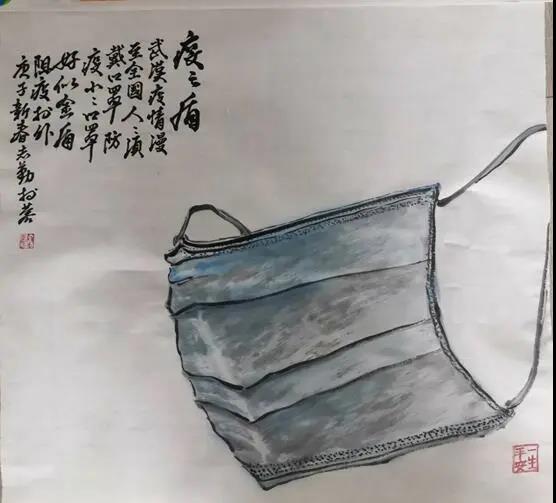“疫之盾”武漢疫情漫至全国,人人須戴口罩防疫,小小口罩好似金盾,防疫於外。庚子立春志勤於蓉城