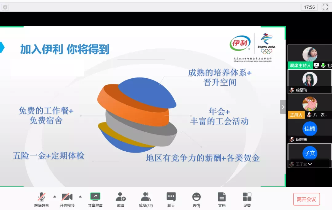 在会议上,杜蒙伊利的招聘负责人庞女士播放了企业宣传片,随后介绍了该企业现今状况和未来发展前景。杜蒙是伊利集团最大的生产基地,也是亚洲领先的奶粉生产基地,负责人表示,员工入职后会有优厚待遇和各项福利,同时,公司为培训生提供双向发展渠道,为有管理潜质的同学提供管理平台,为想潜心专业领域的同学提供专业培训。公司也建立了完备的培训生培养体系和入职培养规划,非常重视对人才的培养。