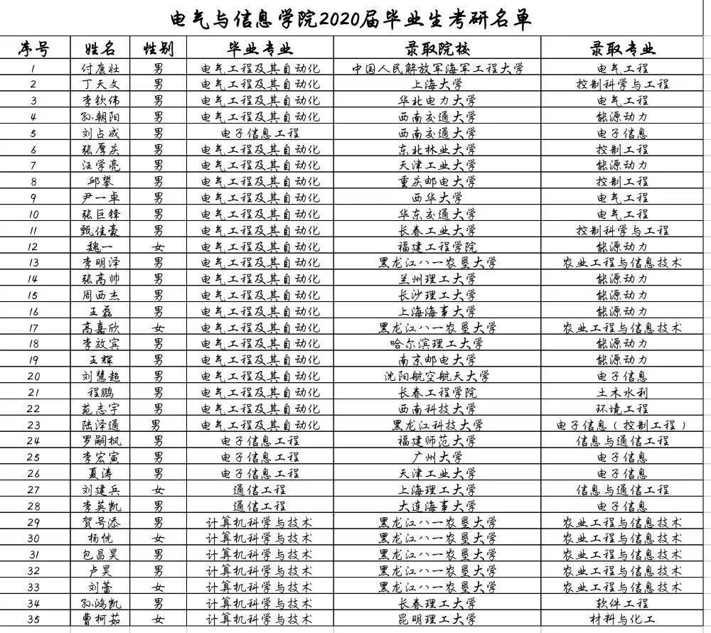 “信息学子齐争放,就业本领我先行”,专业知识的学习是我们老员工活中必不可少的环节,在紧张的就业压力下,掌握一项专业技能会使我们成为就业工作当中的先行者,通过专业技能来获得一份理想的工作已然成为了更多同学们的目标。那么今天小编带大家来认识一下我们2020届毕业生在研究生考试中取得优异成绩的同学们吧!