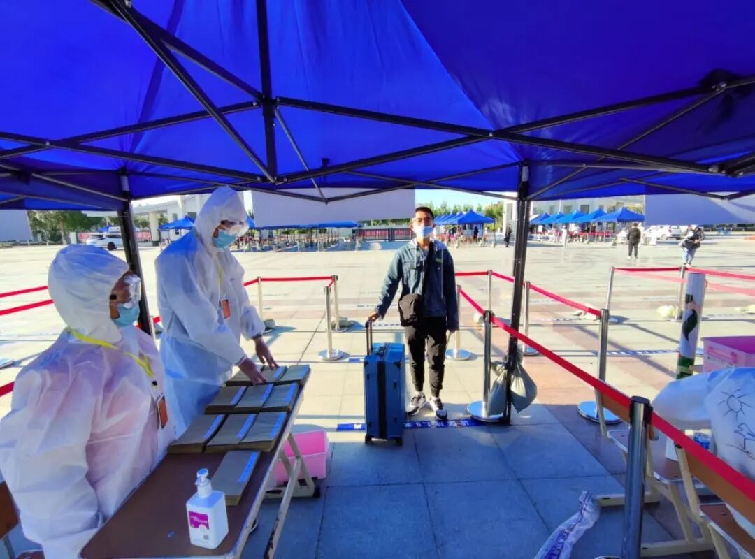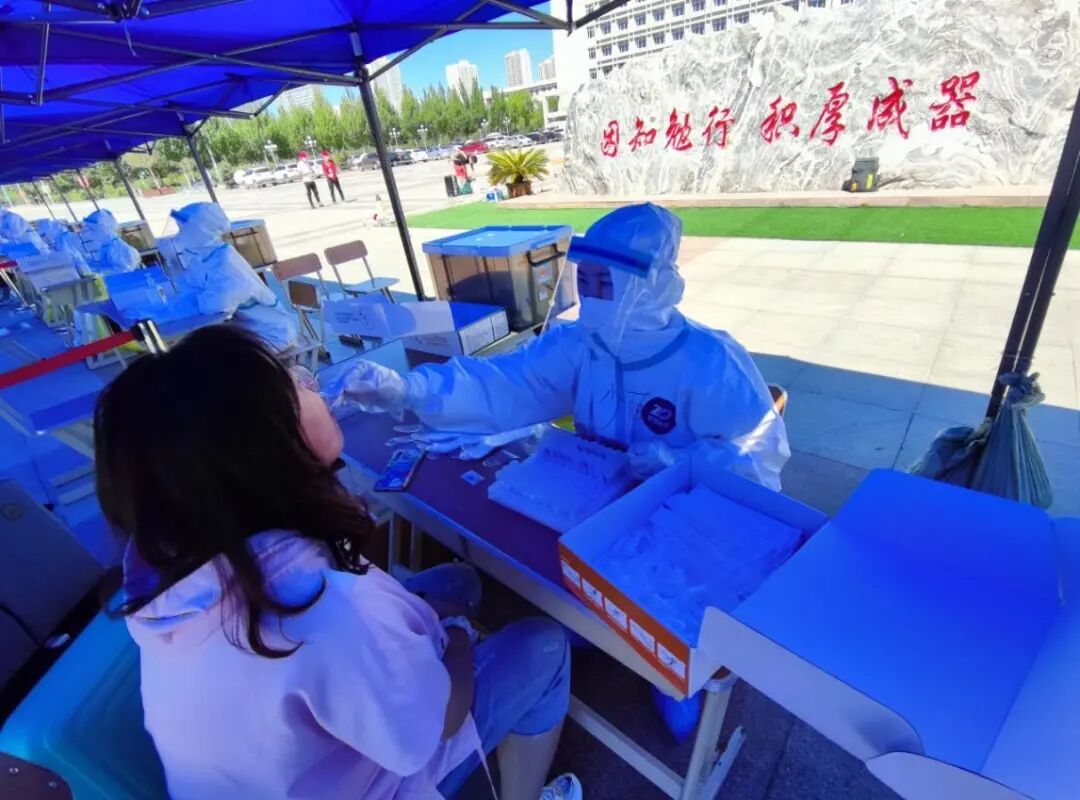 医护人员为返校同学做核酸检测
