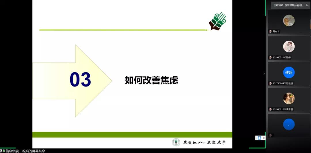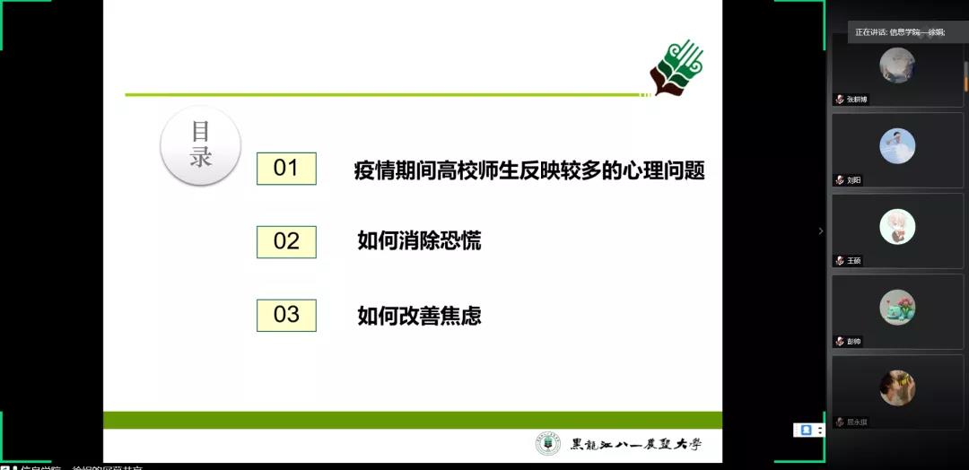 按照省教育厅和学校心理中心的有关部署,为加强心理健康教育工作,进一步提高工作针对性,针对疫情防控期间师生心理状态,6月22日晚6:30分,电气与信息学院组织开展了专题心理讲座。电气与信息学院徐娟老师通过腾讯会议为老师、同学们进行了一场题为:疫情期间师生如何消除焦虑、紧张情绪的心理健康知识讲座。