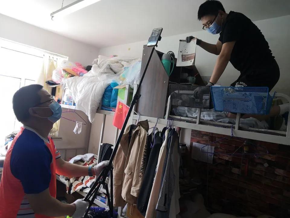 疫情虽然拉开师生间的距离,但却阻隔不了师生间的情谊和惦念,宿舍内不辞辛劳,走廊内穿梭不停,楼梯间来来往往,每一位老师都在用心帮助毕业生整理每一件物品。从开始的杂乱无章到后来的井井有条。