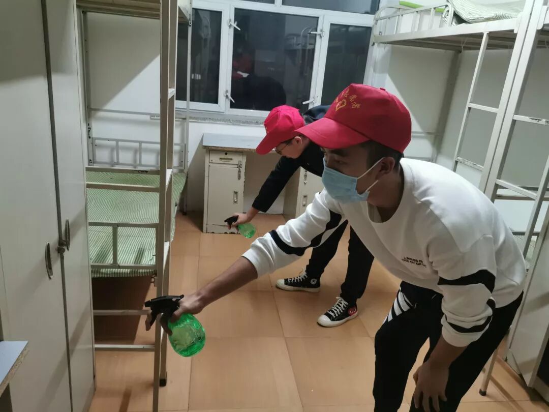 于春雨同学:今天晚上,我继续给一楼的寝室进行卫生消毒,期间看到很多同学晚上依然在挑灯夜读,努力学习。在现在这样的特殊时期,他们还能保持积极向上的态度,我感到自己也应加倍努力。在疫情防控时期,注意自身安全的同时,学习任务也不能丢掉。