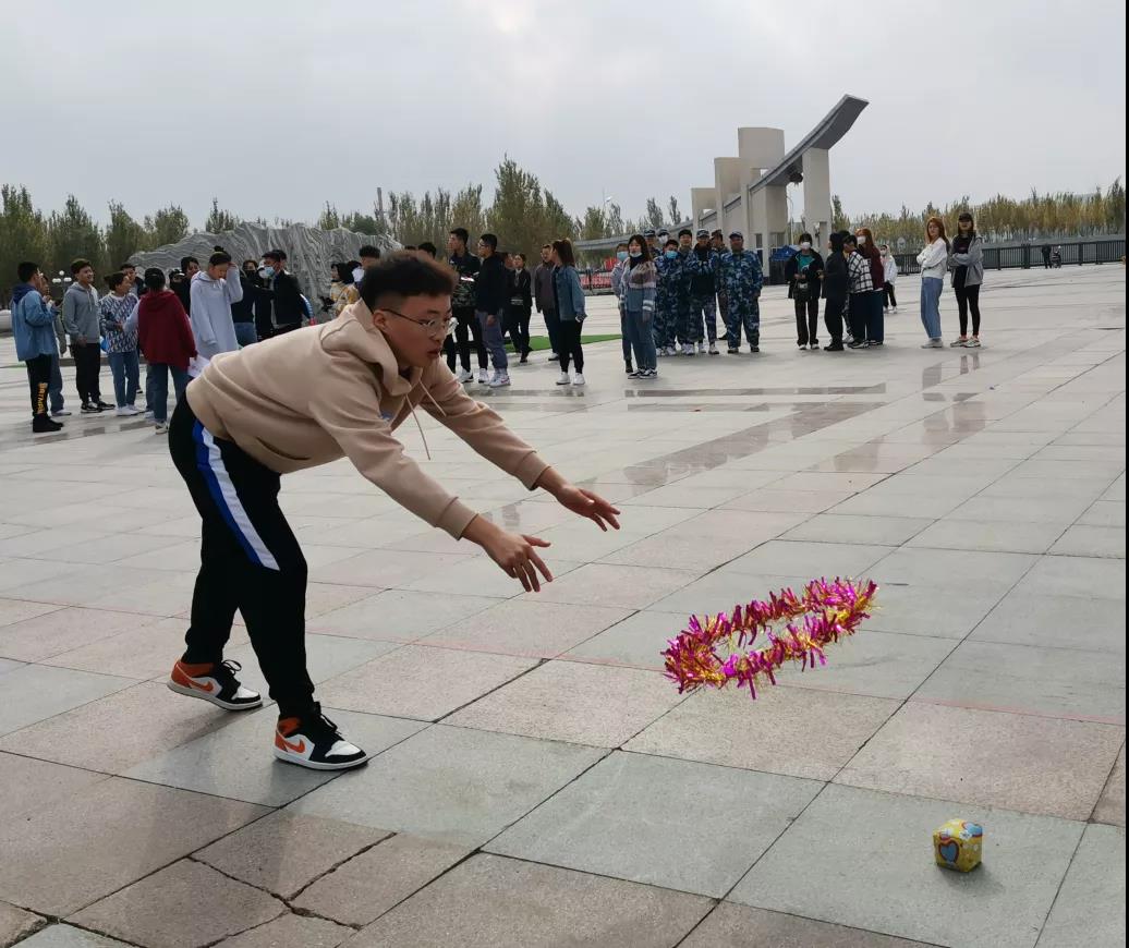 张东志同学正在参加套沙袋项目