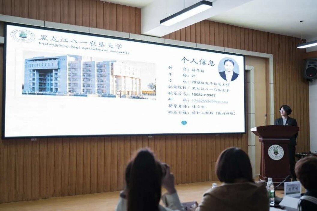 本次比赛共分两个环节,分别为利用PPT阐述个人简历、职业生涯规划书和压力面试。6位选手依次上台简述了自己对于职业规划的理解,并且以PPT的形式对自己短期与长期的职业生涯规划进行了相应的说明与讲解。