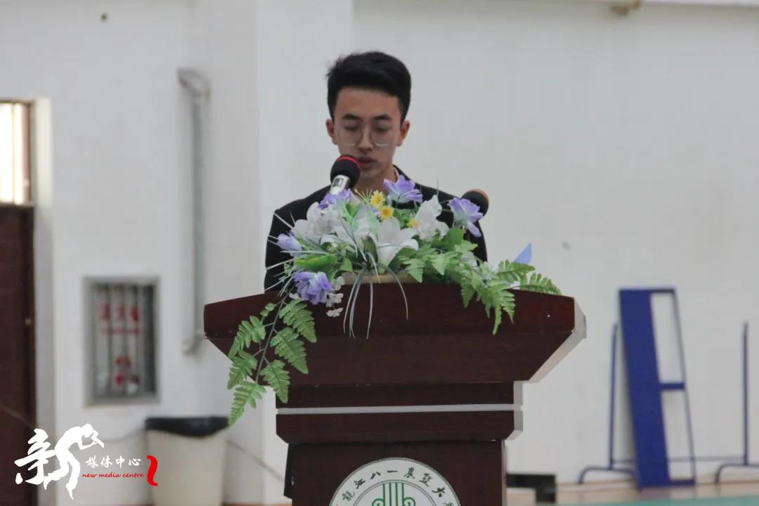 大会第四项由在校生代表电气工程及其自动化2018级(4)班郑稀文同学发言,他的发言展现了老生对新生的帮扶和引导。