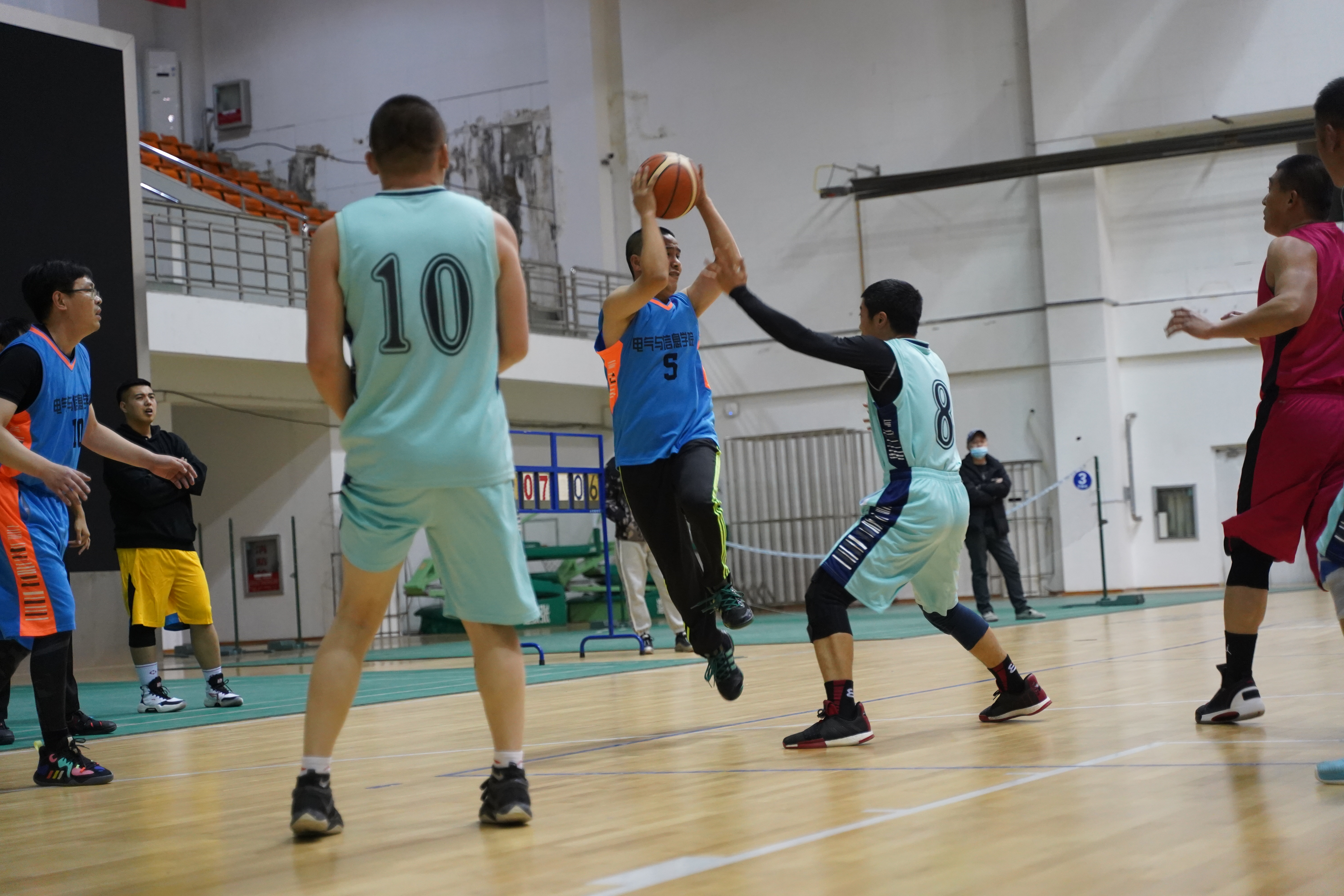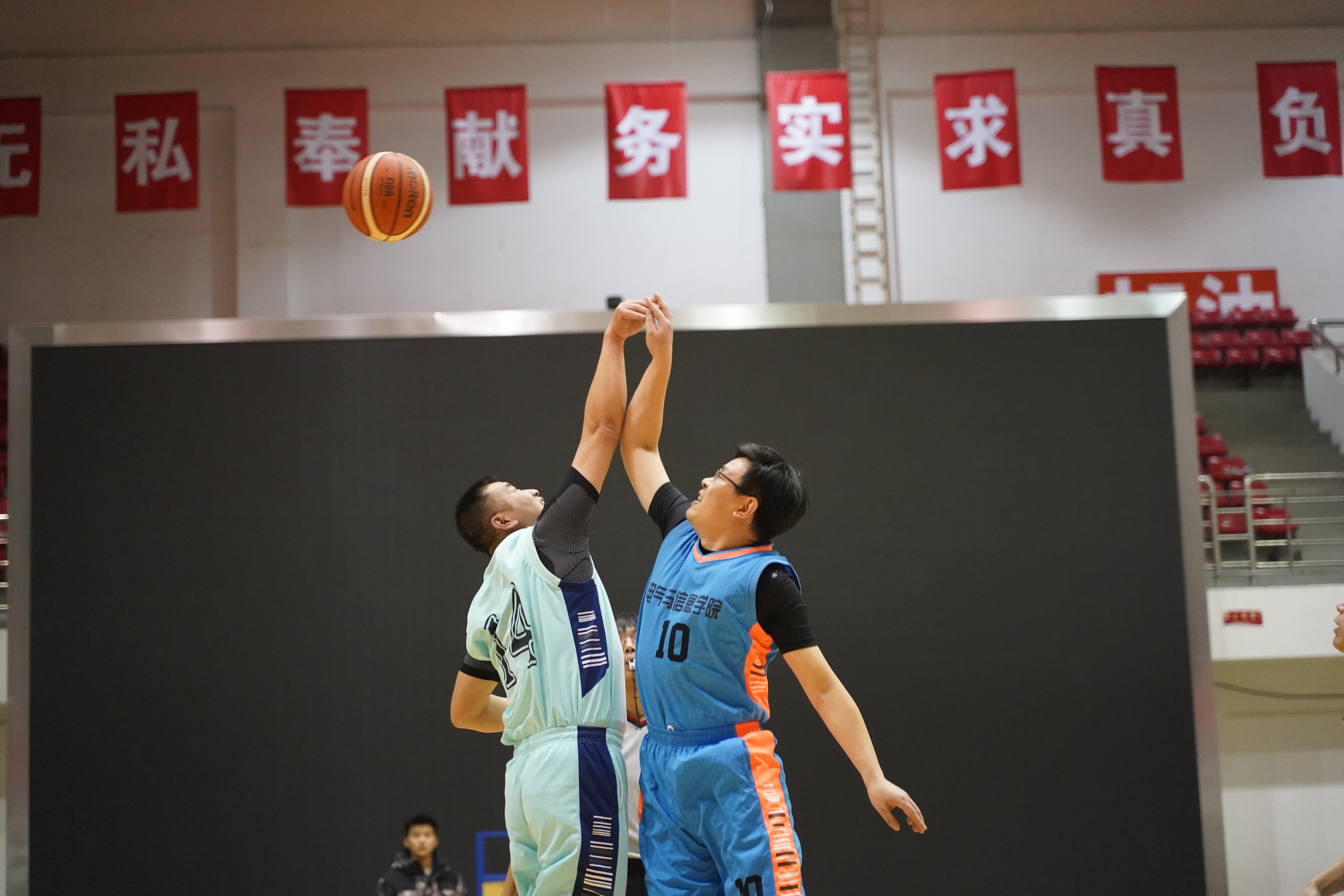 随着吹响的哨声,双方队员站到各自的场地,比赛由此正式开始。台下信息学子们不约而同的喊出公司的口号“信息,信息,自强不息,才华横溢,永争第一”。公司教职工们也因此奋进拼搏。开场便占据上风,士气愈发高涨。坐在观众席的观众也在为赛场上拼搏的教职工们大声加油,场面十分热烈。最终凭着队员之间的默契配合,公司以34:26的成绩获得最终胜利。