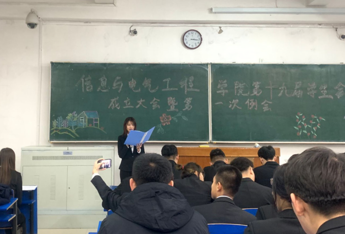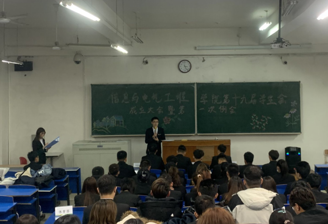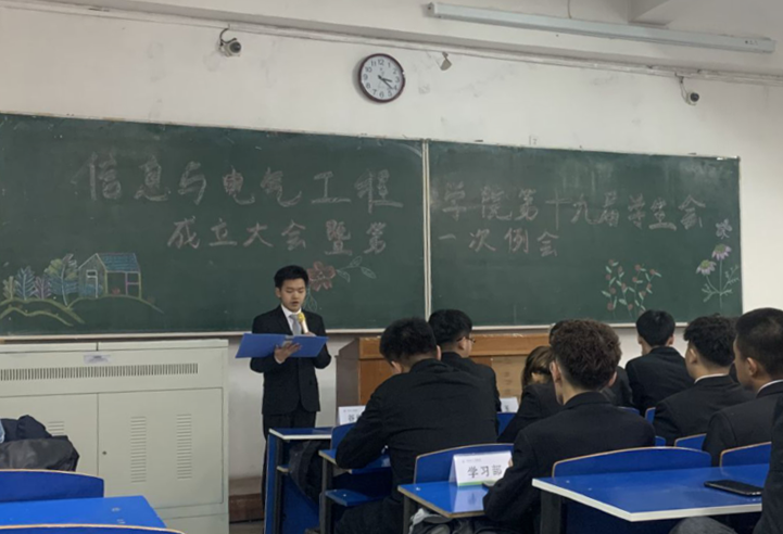 员工会志愿者代表计算机科学与技术一班的王兆埜同学发言。他表示: 很多志愿者都是第一次接触手中的工作, 也许我们不是最优秀的,也许我们的能力不是最强的,但我们一定会成为最努力的,我们会将已有的能力毫无保留地展示出来,也会将潜在的能力培养和激发出来。我们有前辈们的支持,有同学之间的团结,更有用不尽的无限热情。