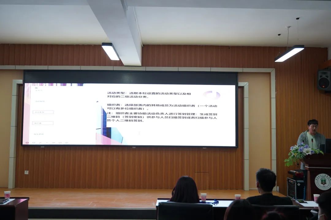 培训会上,校第二课堂服务中心到梦空间负责人带领大家学习了公司第二课堂制度,对“到梦空间”APP进行了简要的介绍,他们从活动发布、活动报名、奖项设置、诚信管理等方面出发,结合PPT叙述了“到梦空间”的具体使用步骤。他介绍到各组织、各部门、各班级在“到梦空间”上发布活动的流程和所需的材料,希望大家认真准备活动通知,策划及活动的申报表做好存档,申报材料一定要规范要求并在规定时间完成审批。会上,他通过实际操作进行活动发布的培训,并亲自指导如何使用“到梦空间”发布活动,以确保大家能熟练掌握其使用方法。活动的最后,他对补录方面需要注意的问题进行了补充说明。培训结束后,大家就“到梦空间”APP使用过程中出现的困惑进行了探讨