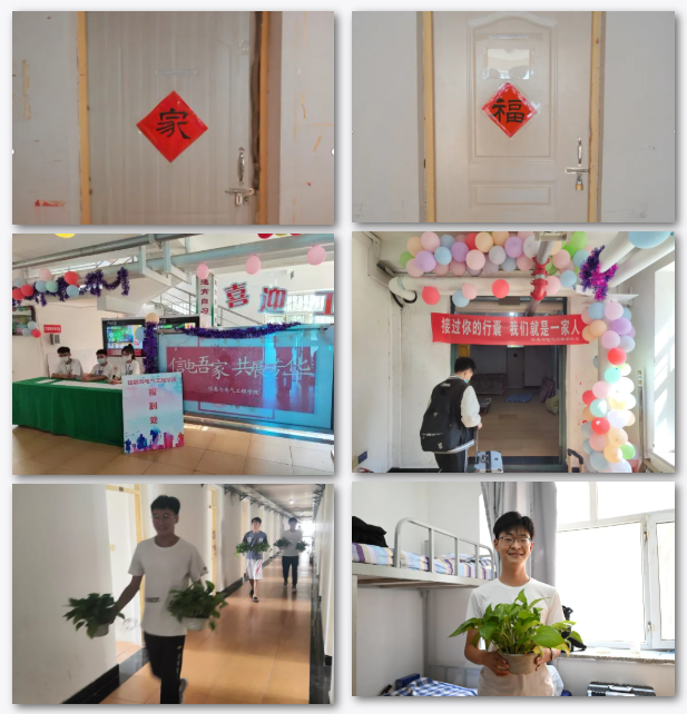开学前夕,学院为每一间新生寝室挂灯笼,张贴“福”字、“家”字,摆放绿萝,通过细致周到的服务、特色新意的布置,将“信电家文化” 融入迎新活动,让初入校园的新生感受到了家的温暖,更好更快地适应和开启老员工活。