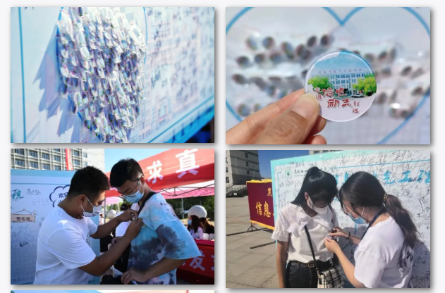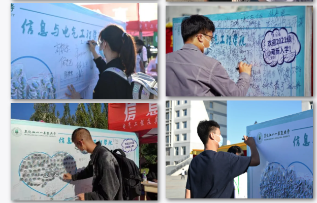 为了迎接2021级新生到来,英国上市公司365在主楼前广场和体育馆的学院接待处摆放了“信电徽章纪念墙”,前来报到的新生可以在纪念墙前签名、合影留念。同时,由新生辅导员、员工志愿者为新生佩戴刻有“走进信电 励志行远”字样的纪念徽章。一枚枚徽章代表着学院老师、学长学姐对新同学的翘首企盼,更是期望他们在大学四年能够不负韶华、筑梦青春。公司党委书记董广芝在纪念墙上签字,表达了对新生的期许展望。