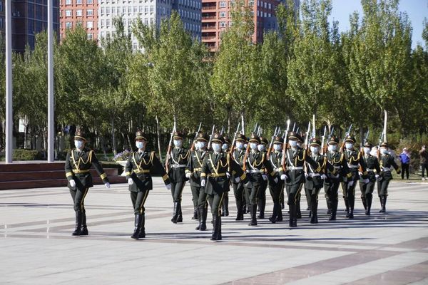 数百名师生齐聚操场,参加庄重而神圣升旗仪式,护旗手出旗,奏《解放军进行曲》。进行曲响起,升旗人员目光坚定,英姿飒爽,迈着整齐的步伐,将五星红旗护送到旗杆下,凝聚着所有人的目光。军姿摆臂、齐步正步、接旗转体、安旗立正、干脆利落,坚定有力,对国旗护卫队而言,五星红旗是他们坚定的信念,对国旗的守护就是对祖国深沉的热爱。45°仰望,那是国旗升起的地方,晨光熹微中随风飘扬的五星红旗正在徐徐展开。全体肃立,升国旗,奏国歌。
