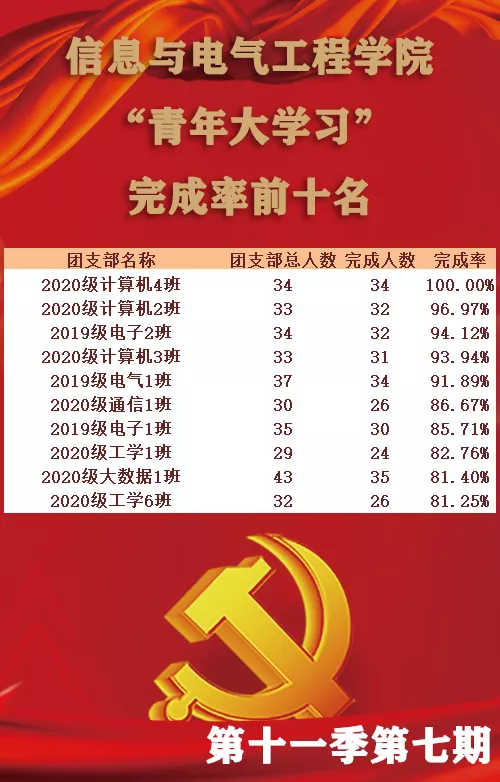 如此精彩的团课上线后,各团支部也积极动员团支部成员观看,这里向同学们展示青年大学习第十一季第七期学习的具体数据。